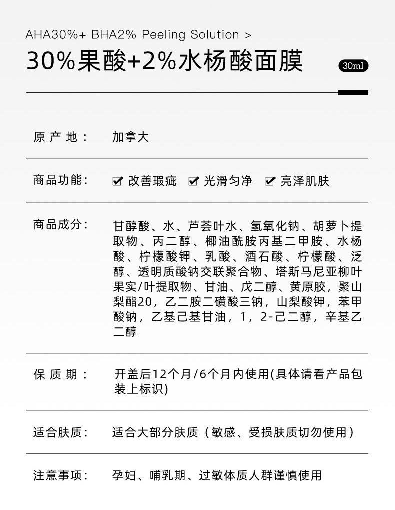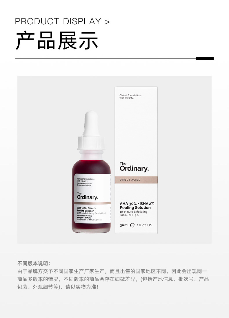 The Ordinary30%果酸+2%水杨酸面膜精华液去角质清理闭口粉刺30ml纯净护肤