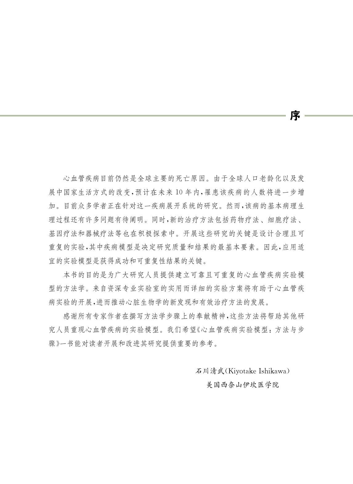 本书就如何建立稳定、可重复的心血管疾病模型进行了详细且准确的阐述。 全书共分为6篇30章,详细介绍了心血管疾病的计算机模型、体外模型、离体模型、小动物模型以及大动物模型的建立方法和操作步骤。 小到心肌细胞的分离培养,大到大动物在体心血管疾病模型的建立,均可在本书中找到详实且准确的答案。 本书由从事心血管疾病基础研究和临床研究的国内外专家共同翻译,是一部心血管疾病模型制备技术全面、可靠的参考书,可为从事心血管疾病研究的学者、研究生以及技术人员等提供帮助。