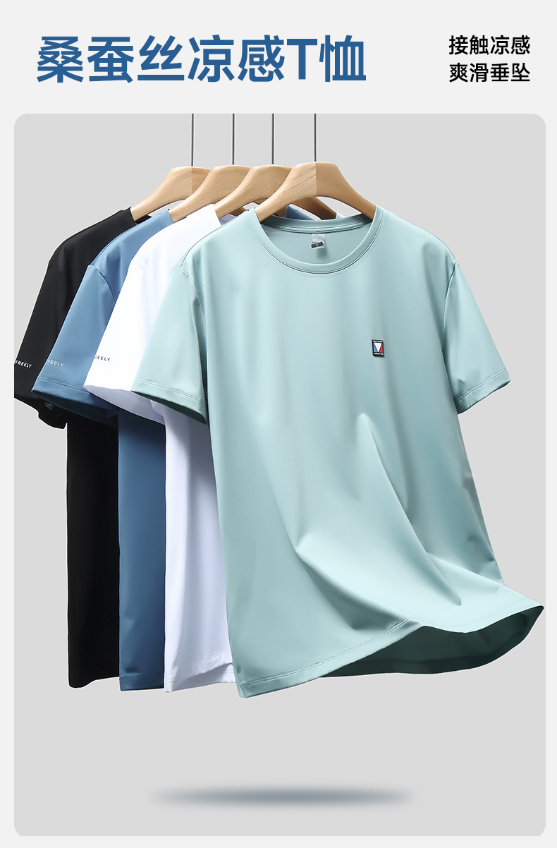 【新款DWN】大依优型大码男装桑蚕丝圆领短袖T恤休闲运动加肥加大胖子穿大号打底半袖