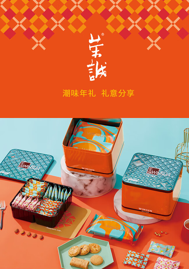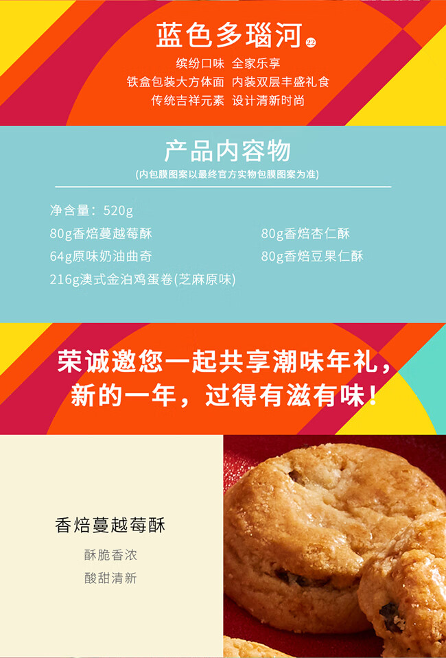 荣诚(Winsun) 荣诚蓝色多瑙河新版年货礼盒杏仁酥奶油曲奇蔓越莓酥鸡蛋卷零食
