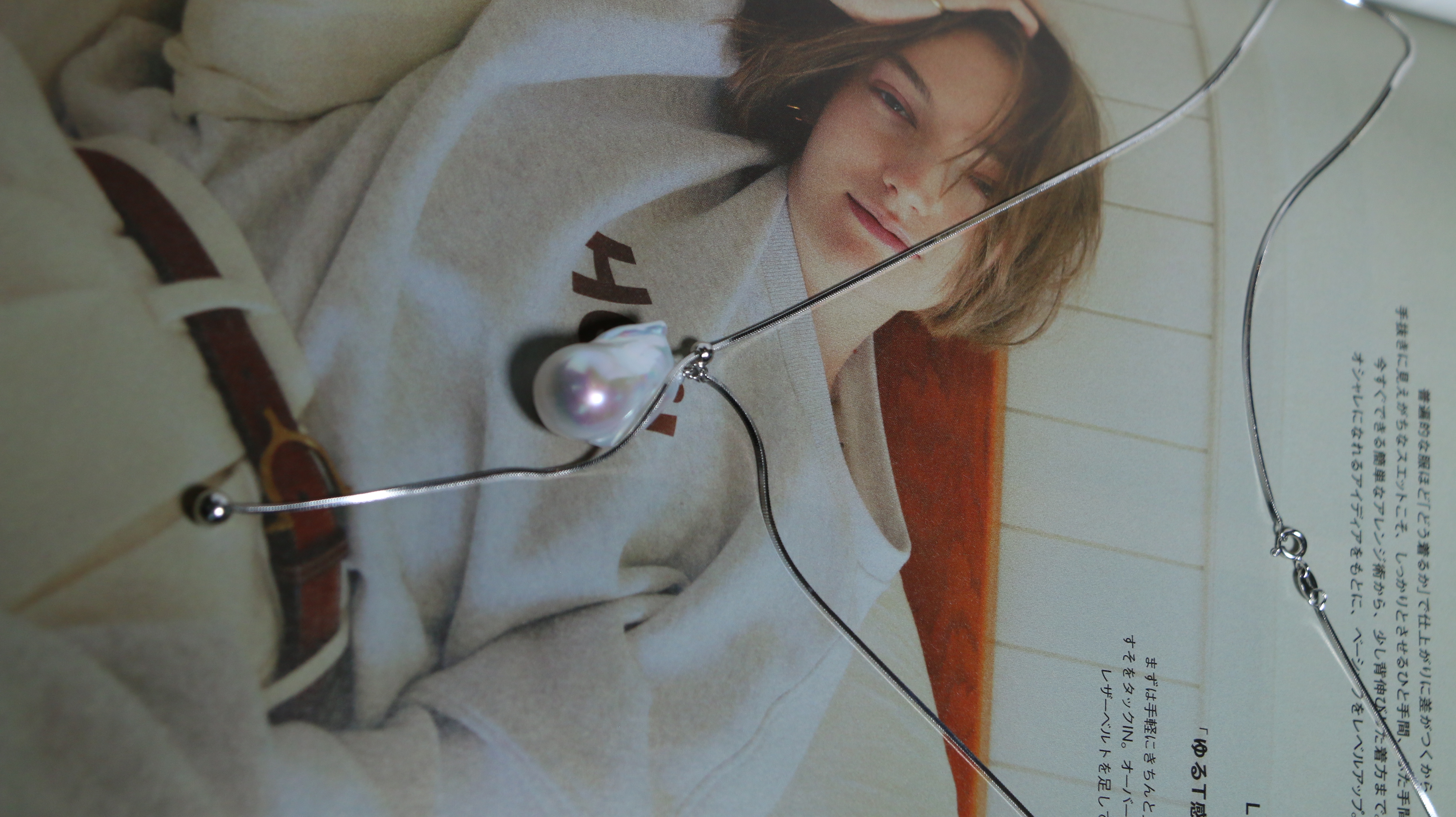 甄珠贝 大巴滑动调节蛇骨链 随性放松,个性自由! 很油亮,滑皮,微微瑕 15*19mm左右(巴洛克造型不一,尺寸略微有一些出入)