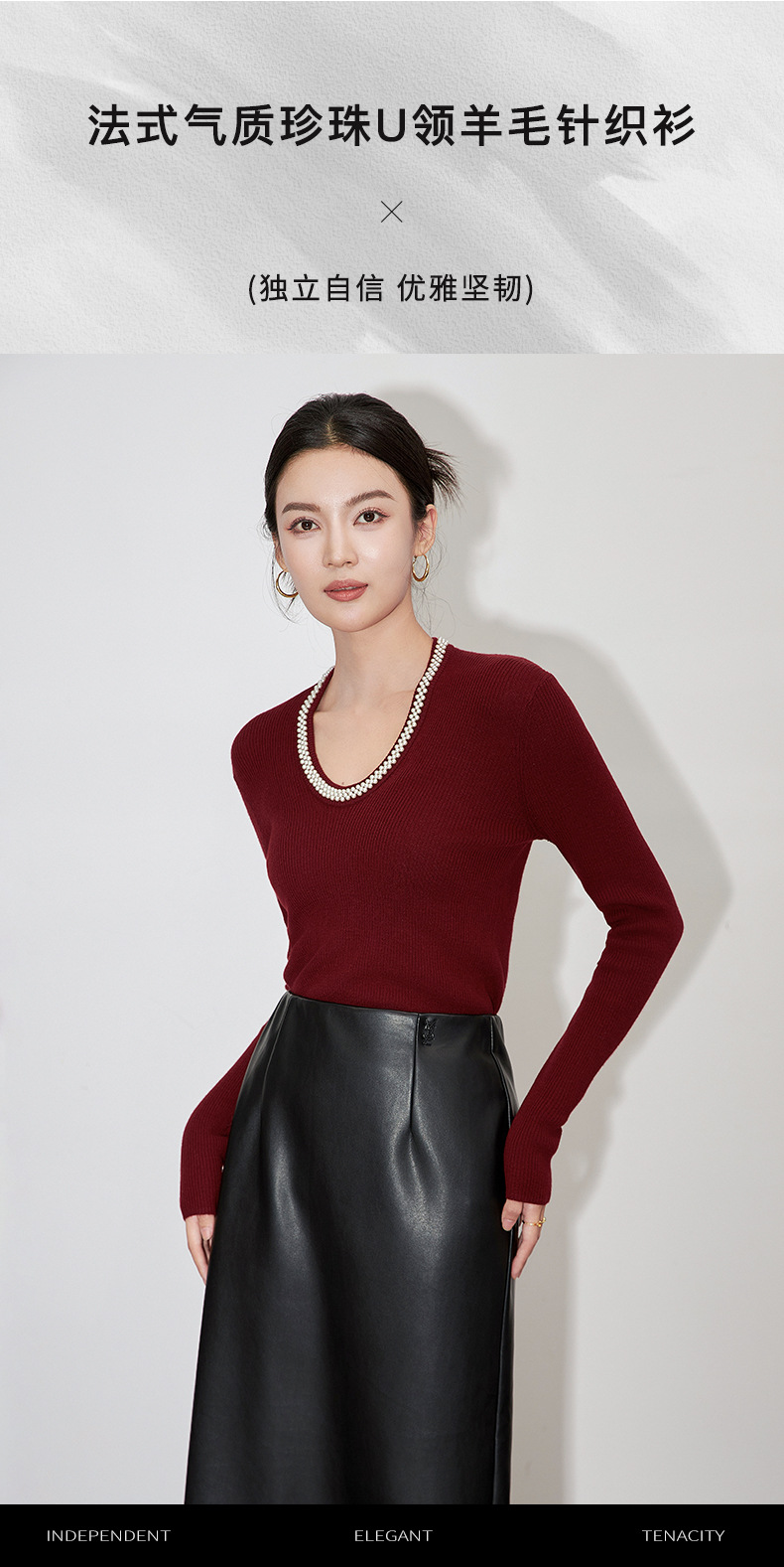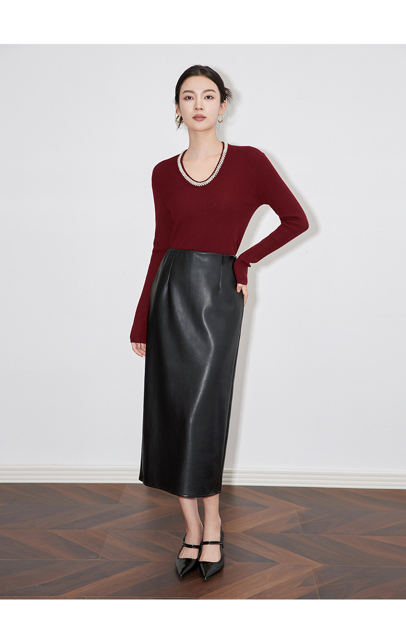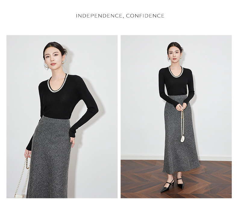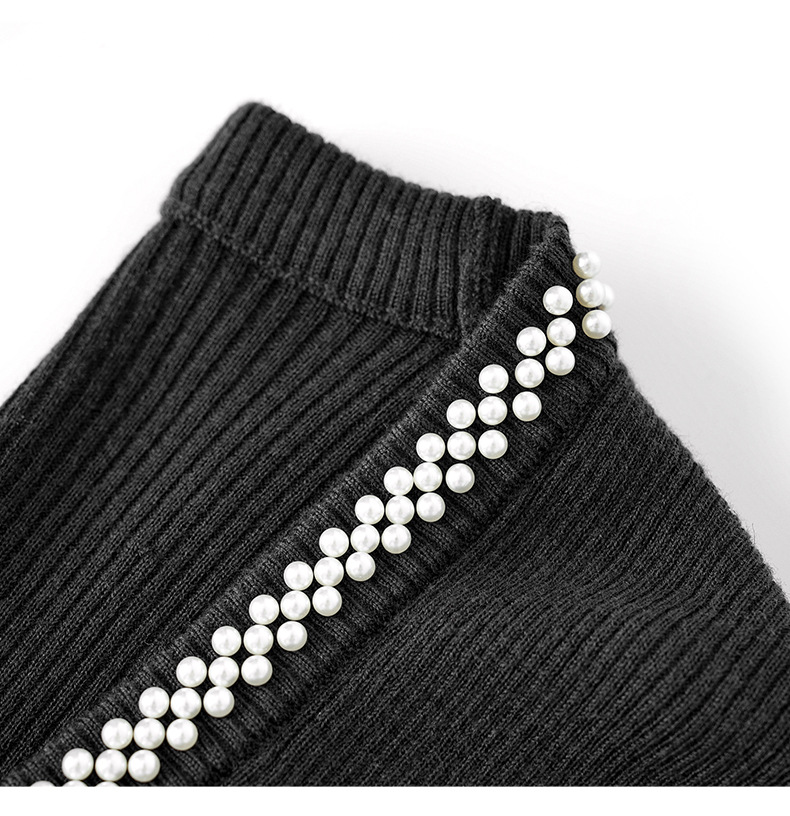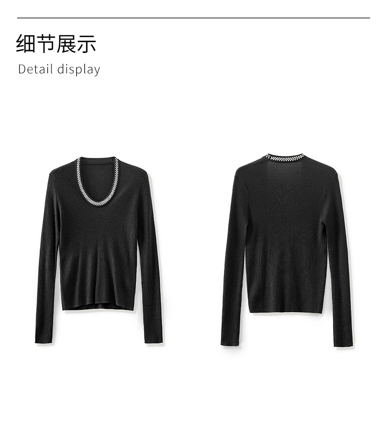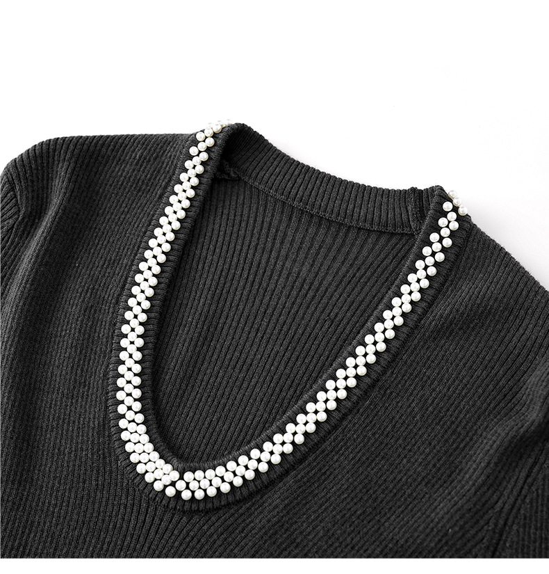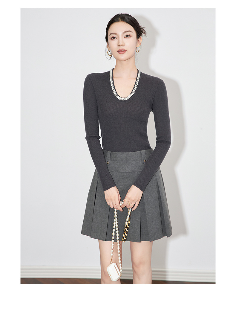 【高货】全新升级【铂金会员220/天猫289/差价69】(34732) 洛诗琳法式重工优雅气质重工U领珍珠绵羊毛针织打底上衣女