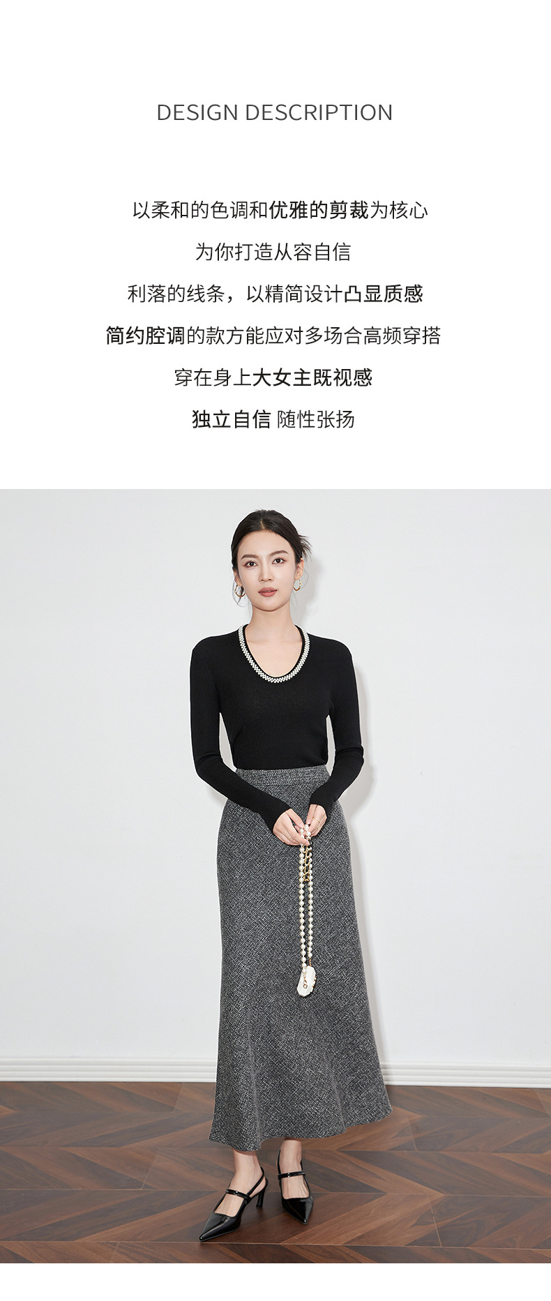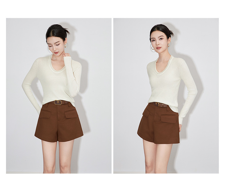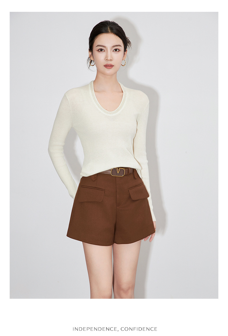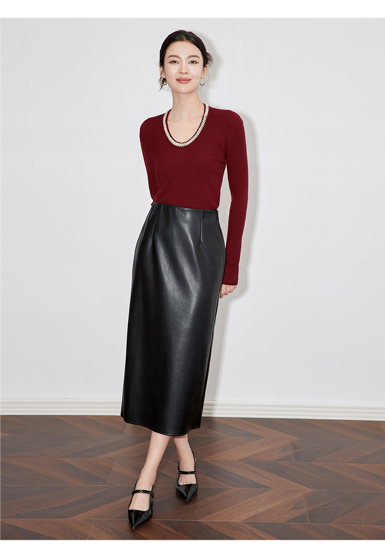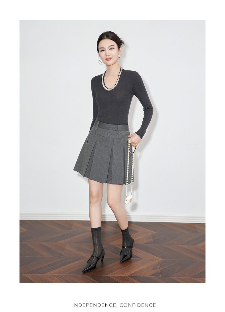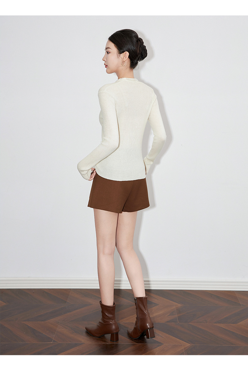 【高货】全新升级【铂金会员220/天猫289/差价69】(34732) 洛诗琳法式重工优雅气质重工U领珍珠绵羊毛针织打底上衣女
