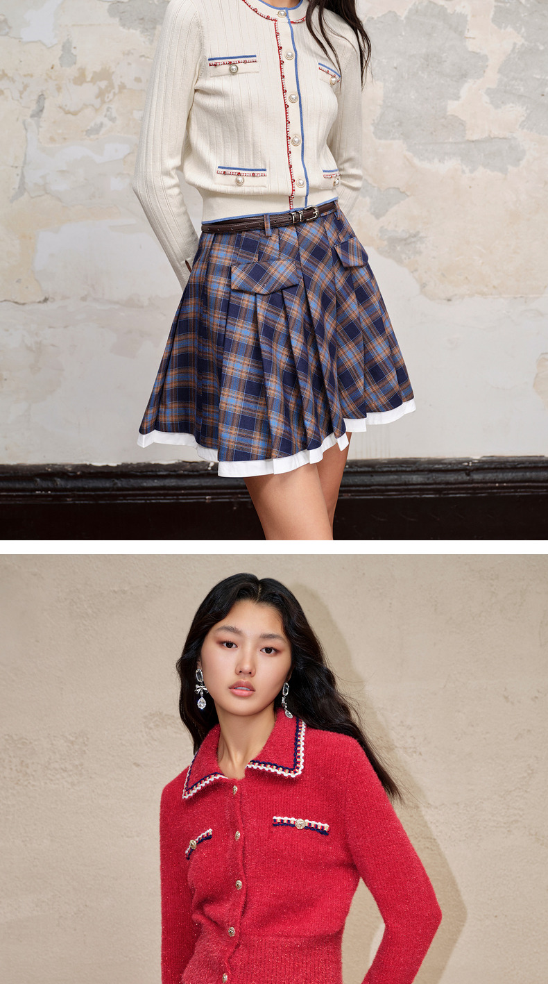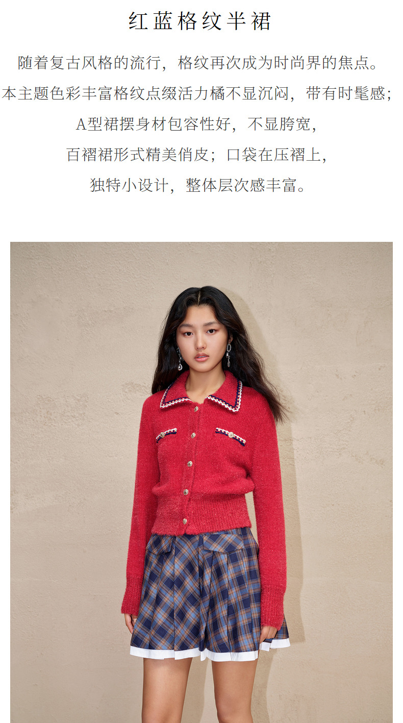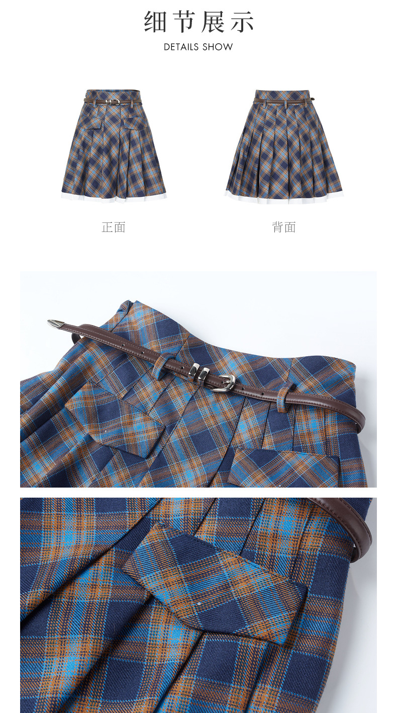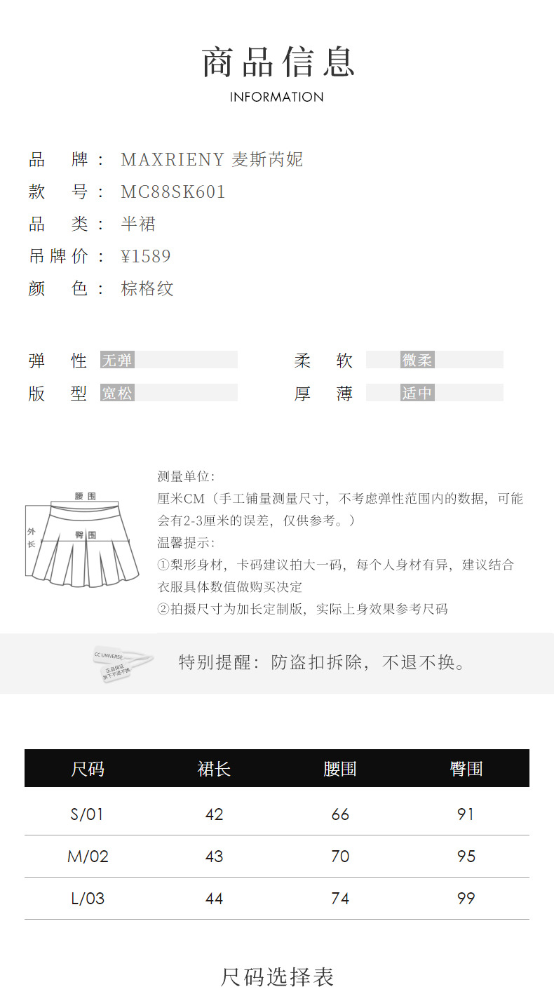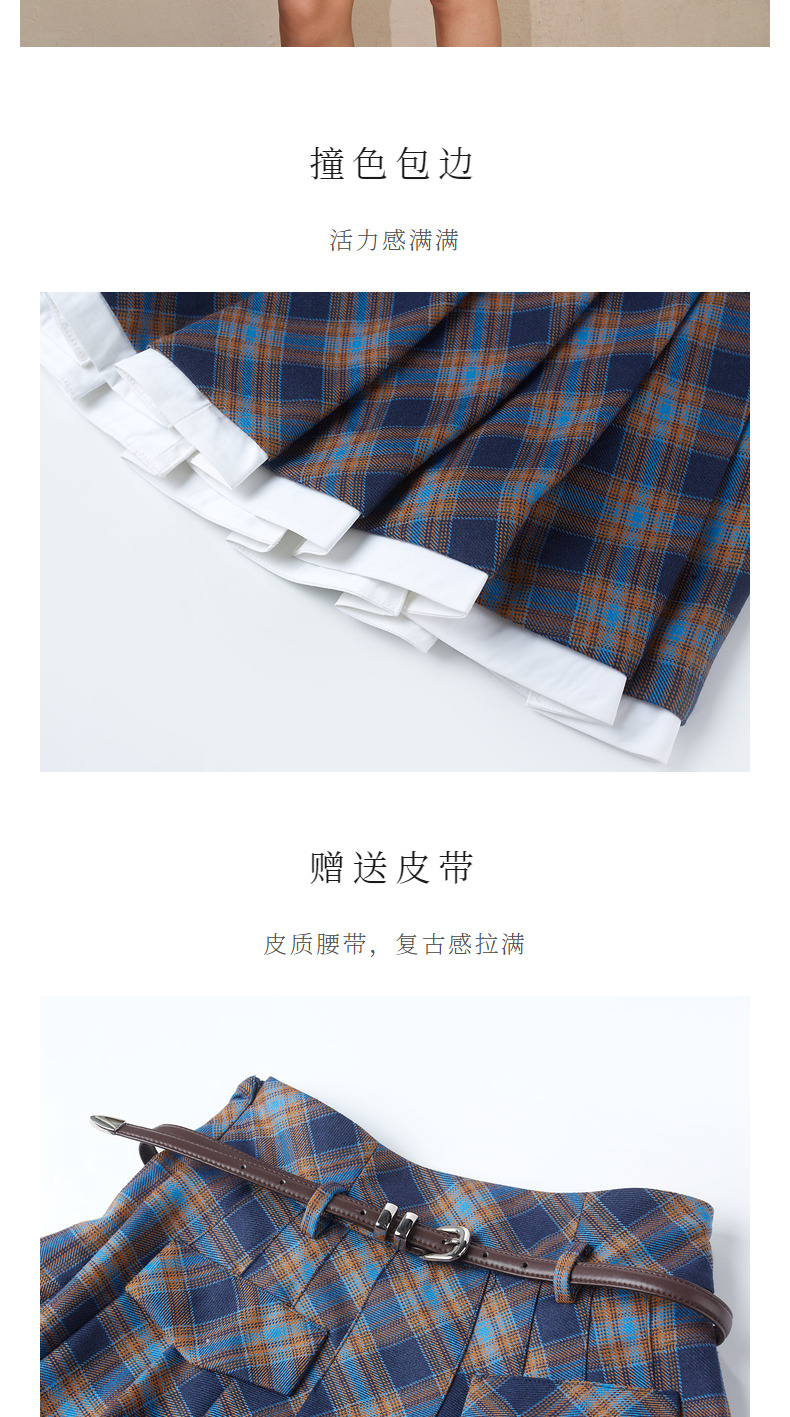 MAXRIENY*复古学院风格纹半裙百褶高腰短裙(货号:MC88SK601)