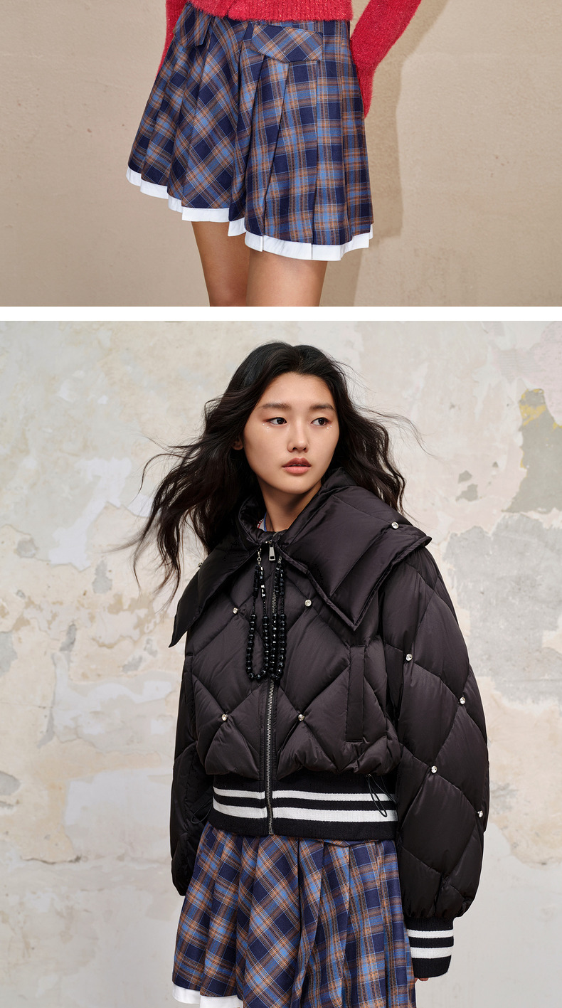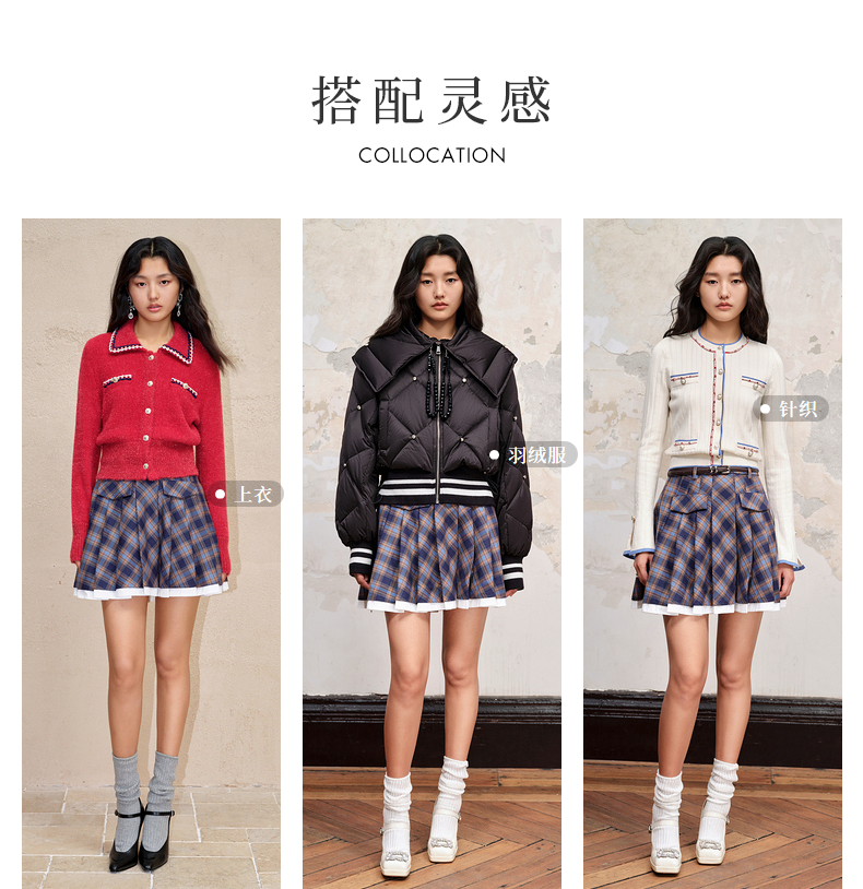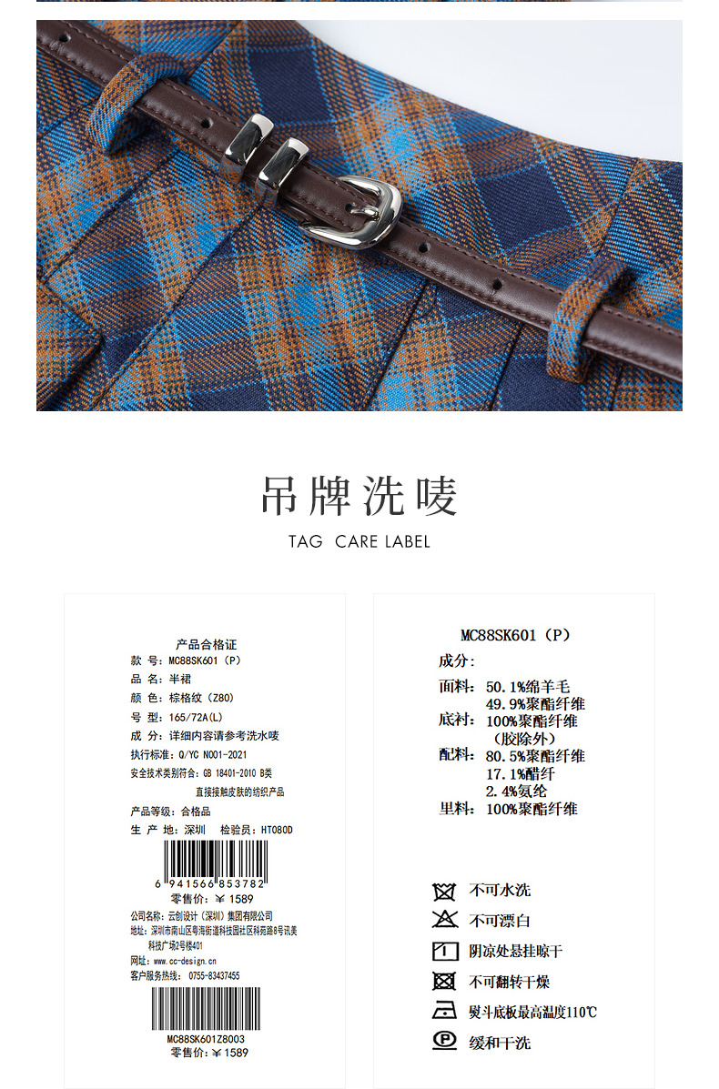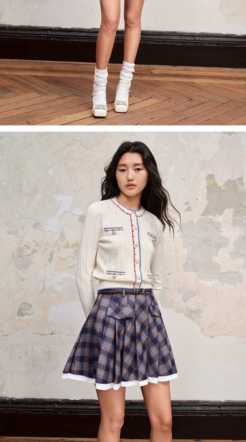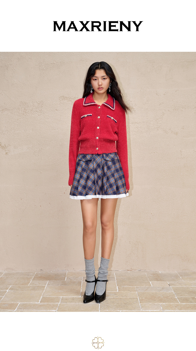 MAXRIENY*复古学院风格纹半裙百褶高腰短裙(货号:MC88SK601)