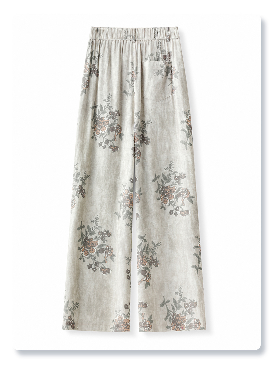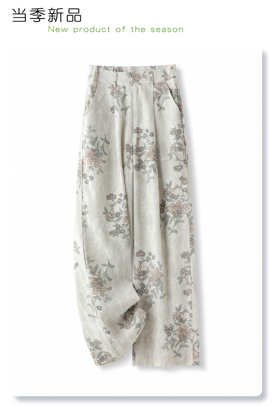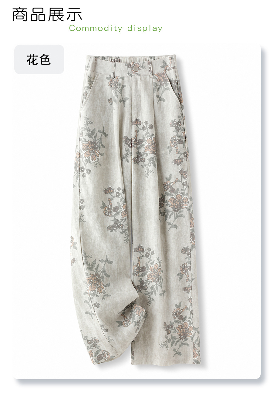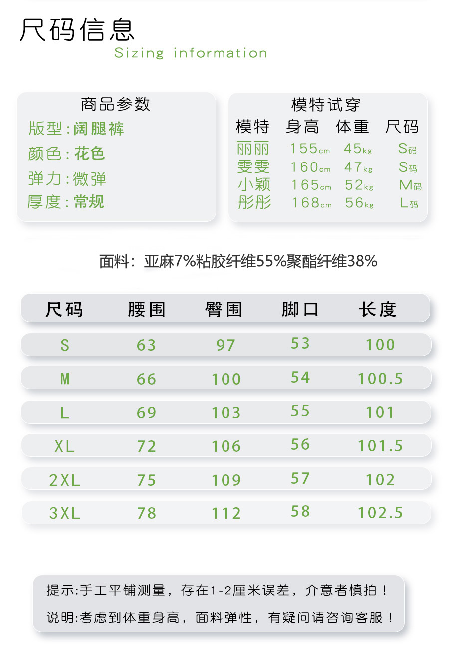 丁摩 花色亚麻阔腿裤女春夏季薄款高腰显瘦宽松休闲裤垂感直筒裤5ZF-118581