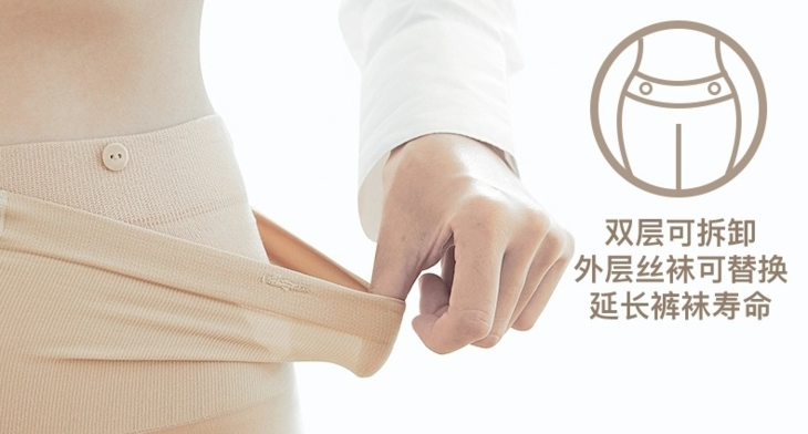 丝袜最怕的就是掉档,这款可拆卸光腿神器,通过对肌肉走势、对盆骨的包裹设计,在裆部做了黄金三角支撑设计。