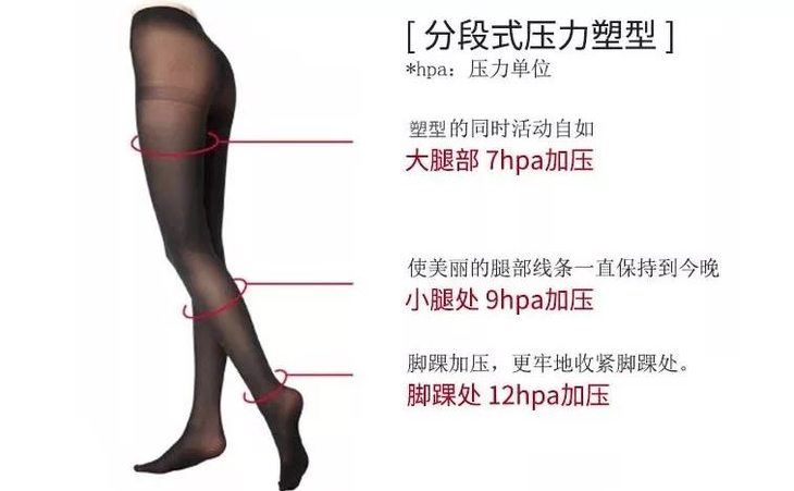 根据立体分段式压力塑形设计,、由下至上的压力会变得越来越小,穿起来就会舒服很多很多,弹性也好!
