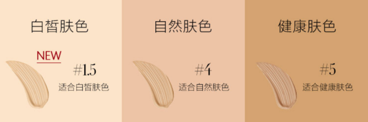 自然肤适合皮肤大部分亚洲妹子,贴近自然色号粉底液。