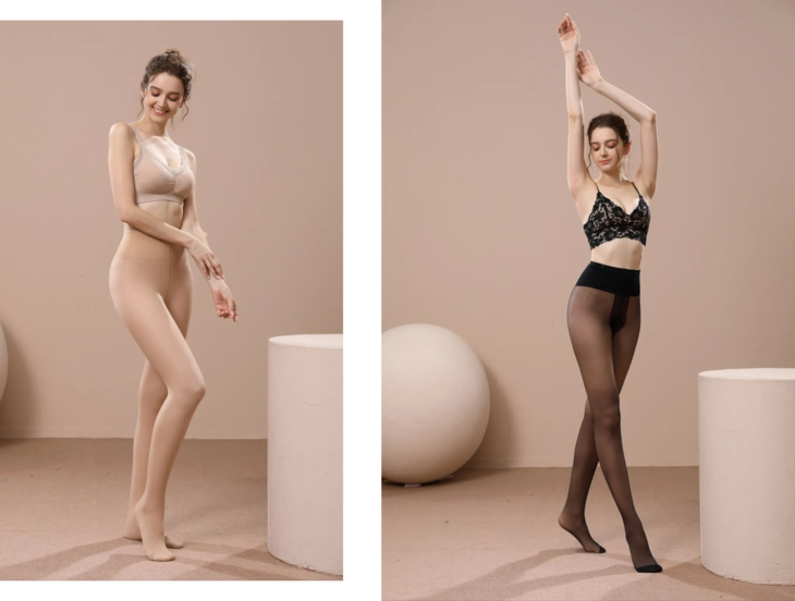 打底袜用了超高腰设计+固定裆,避免掉裆,还针对亚洲女性的塑臀聚拢设计,采用3D立体提臀设计,将流失、下垂的赘肉重新集中,有效提升扁塌臀线。