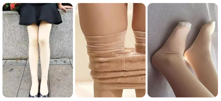 想保暖选厚一点的打底袜,穿上却像假肢,关节位置没有骨骼感、双腿轮廓不清晰、颜色偏黄毫无活力。