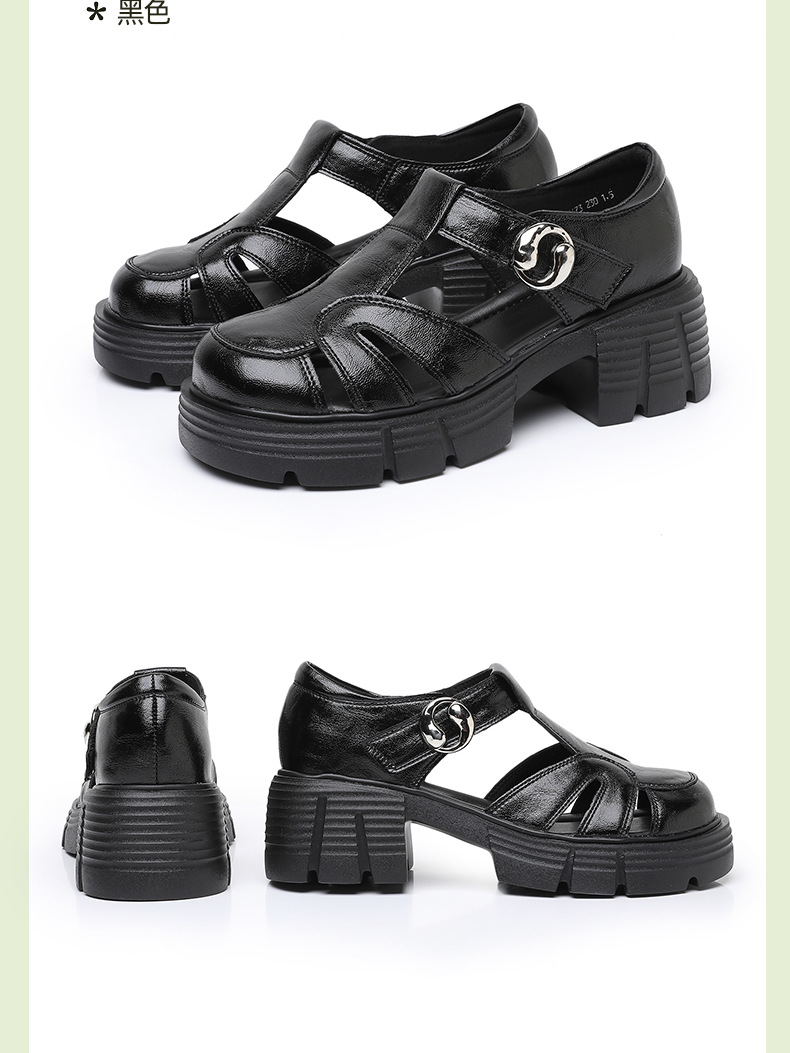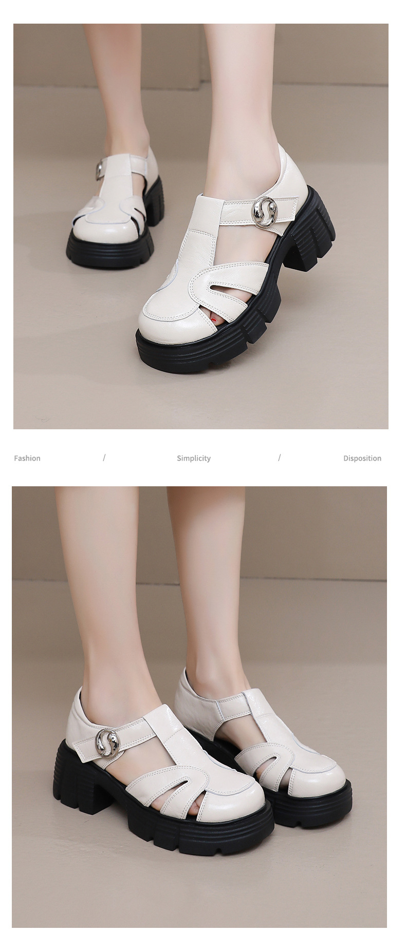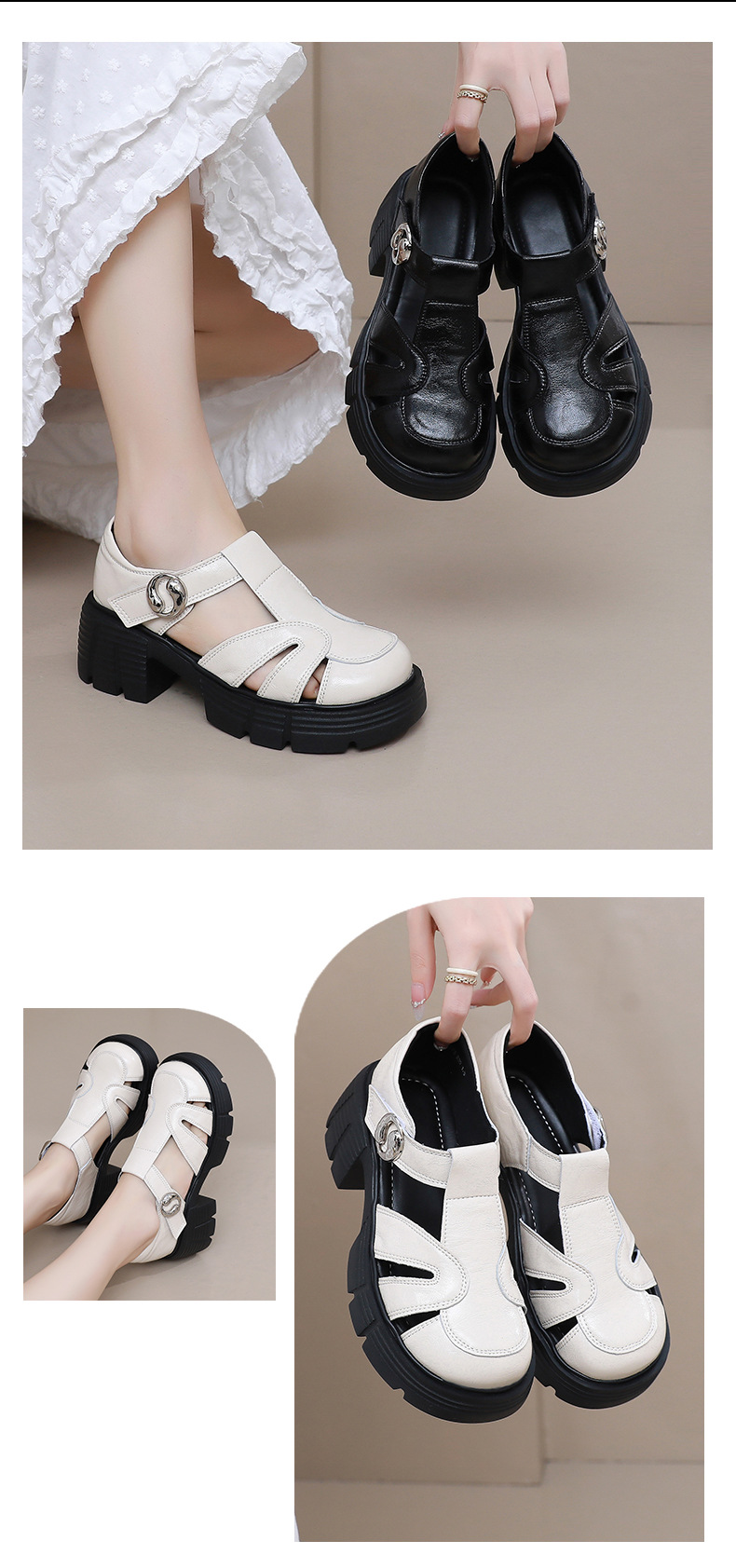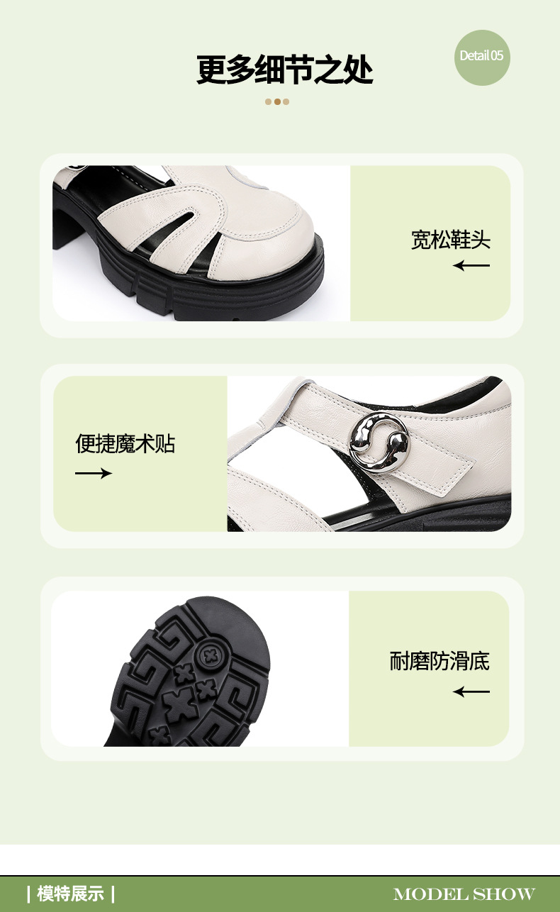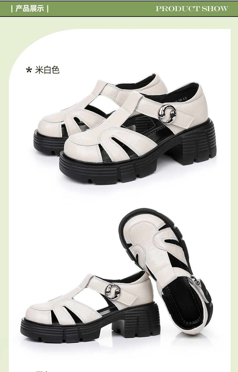 丁摩 包头罗马凉鞋女夏季新款复古松糕厚底防滑百搭镂空真皮软底鞋5ZF-3376