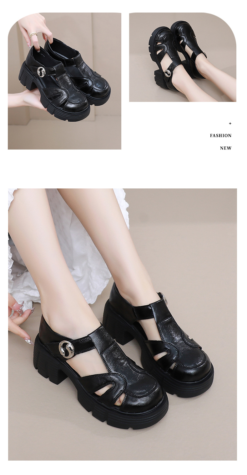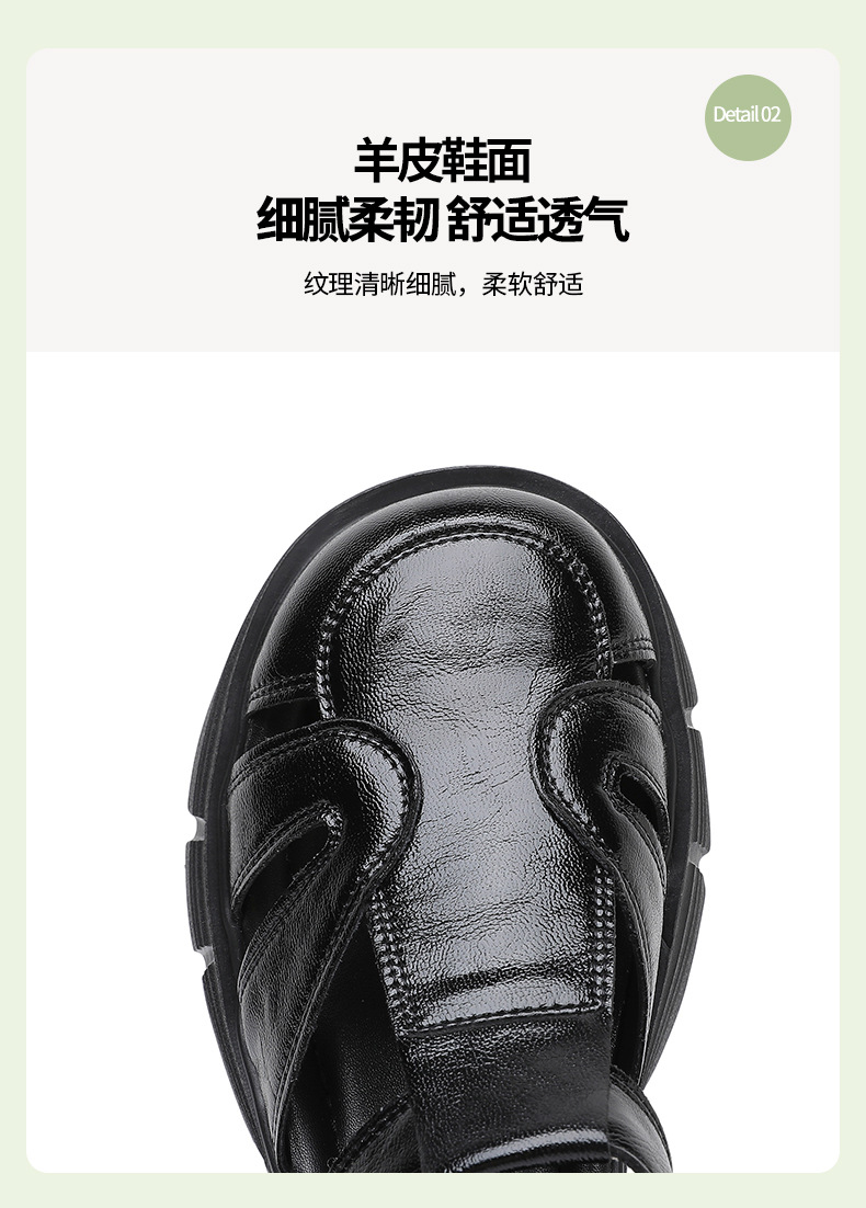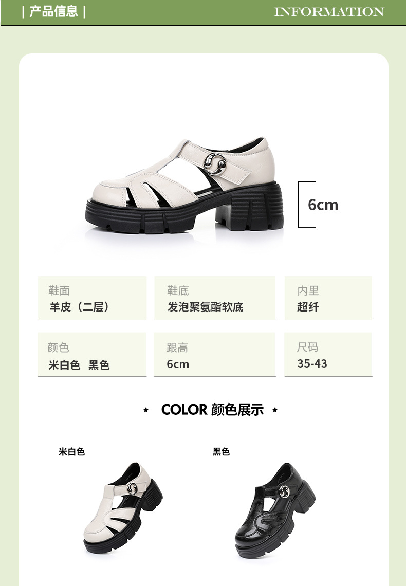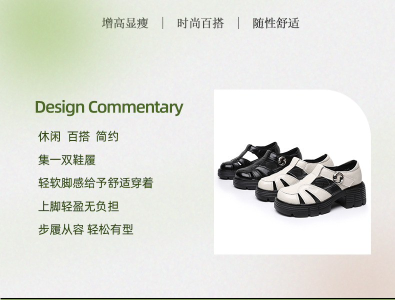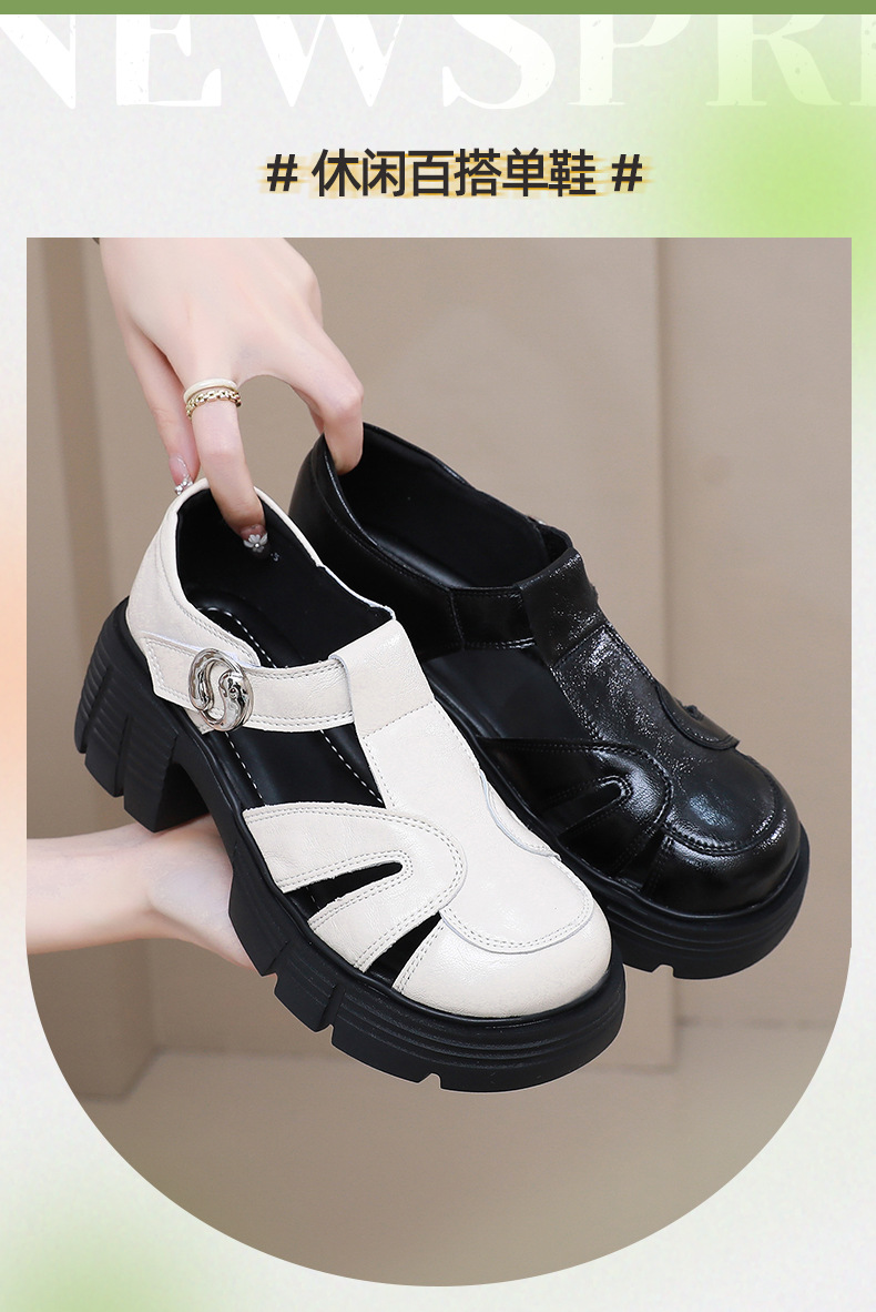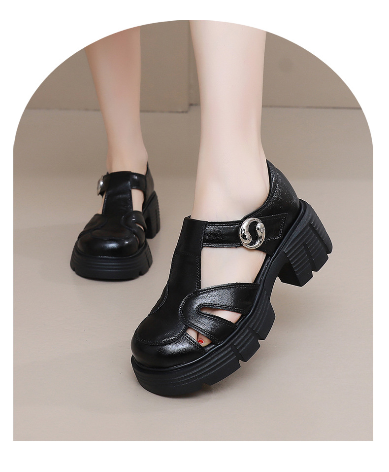 丁摩 包头罗马凉鞋女夏季新款复古松糕厚底防滑百搭镂空真皮软底鞋5ZF-3376