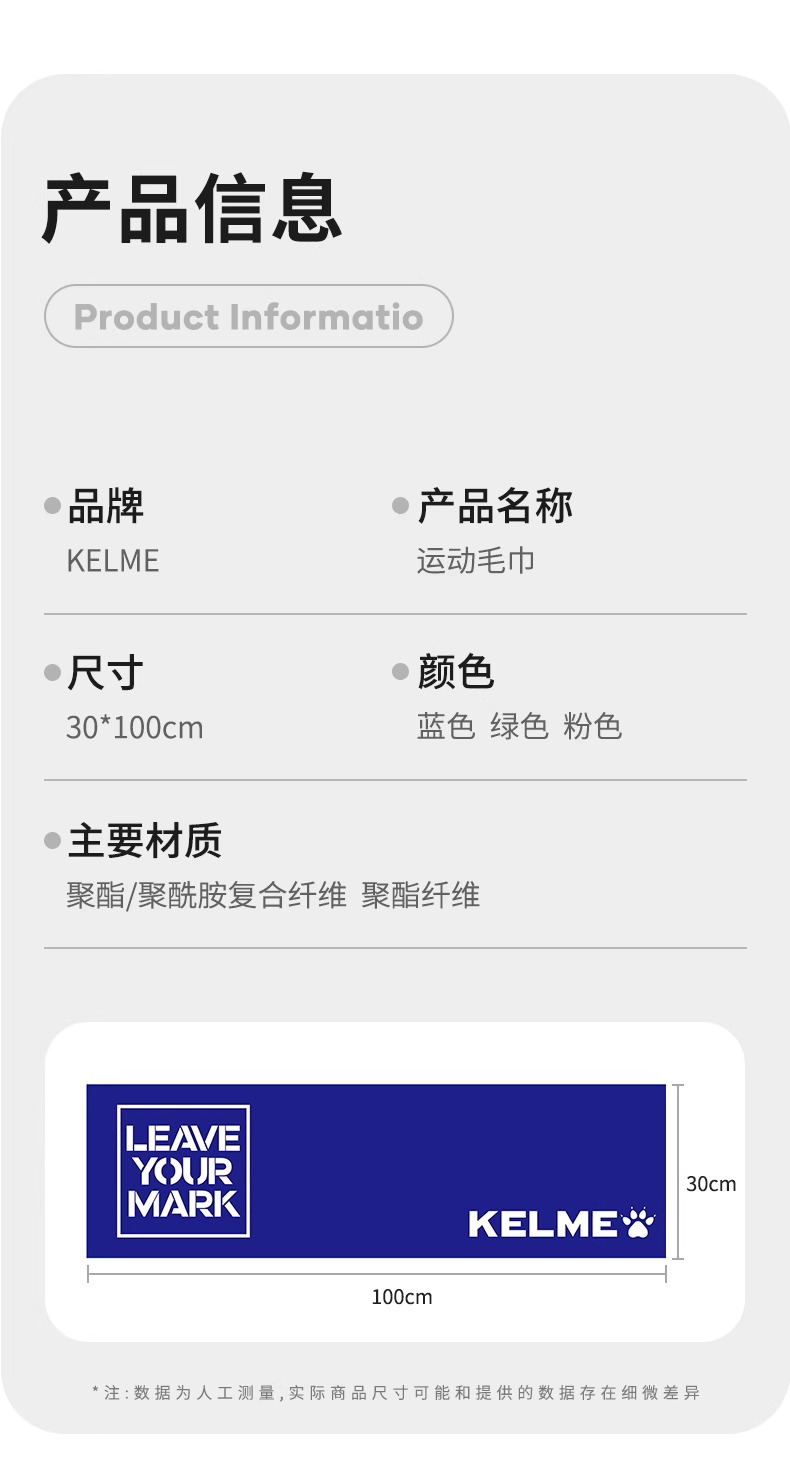 卡尔美新款运动毛巾