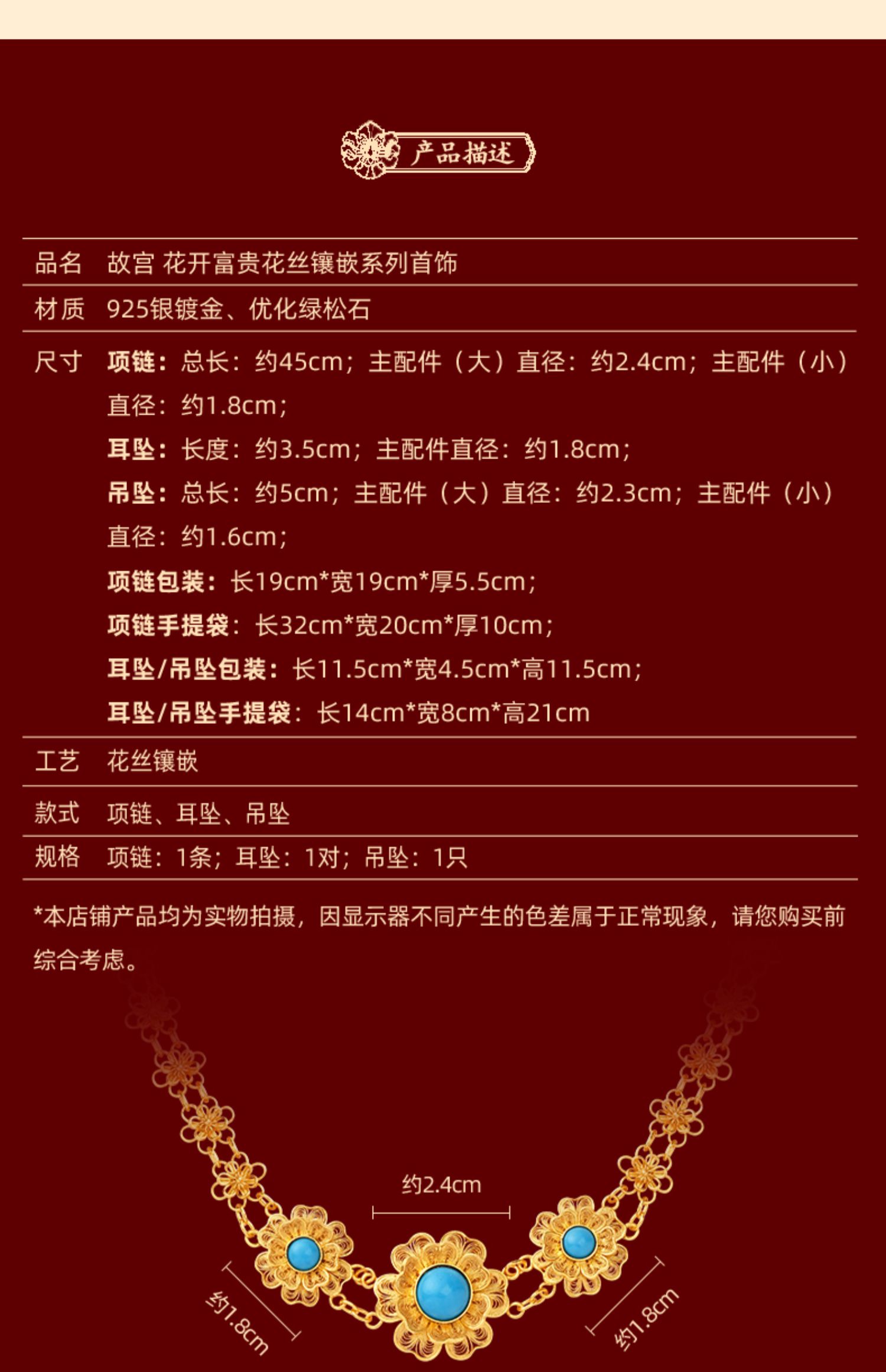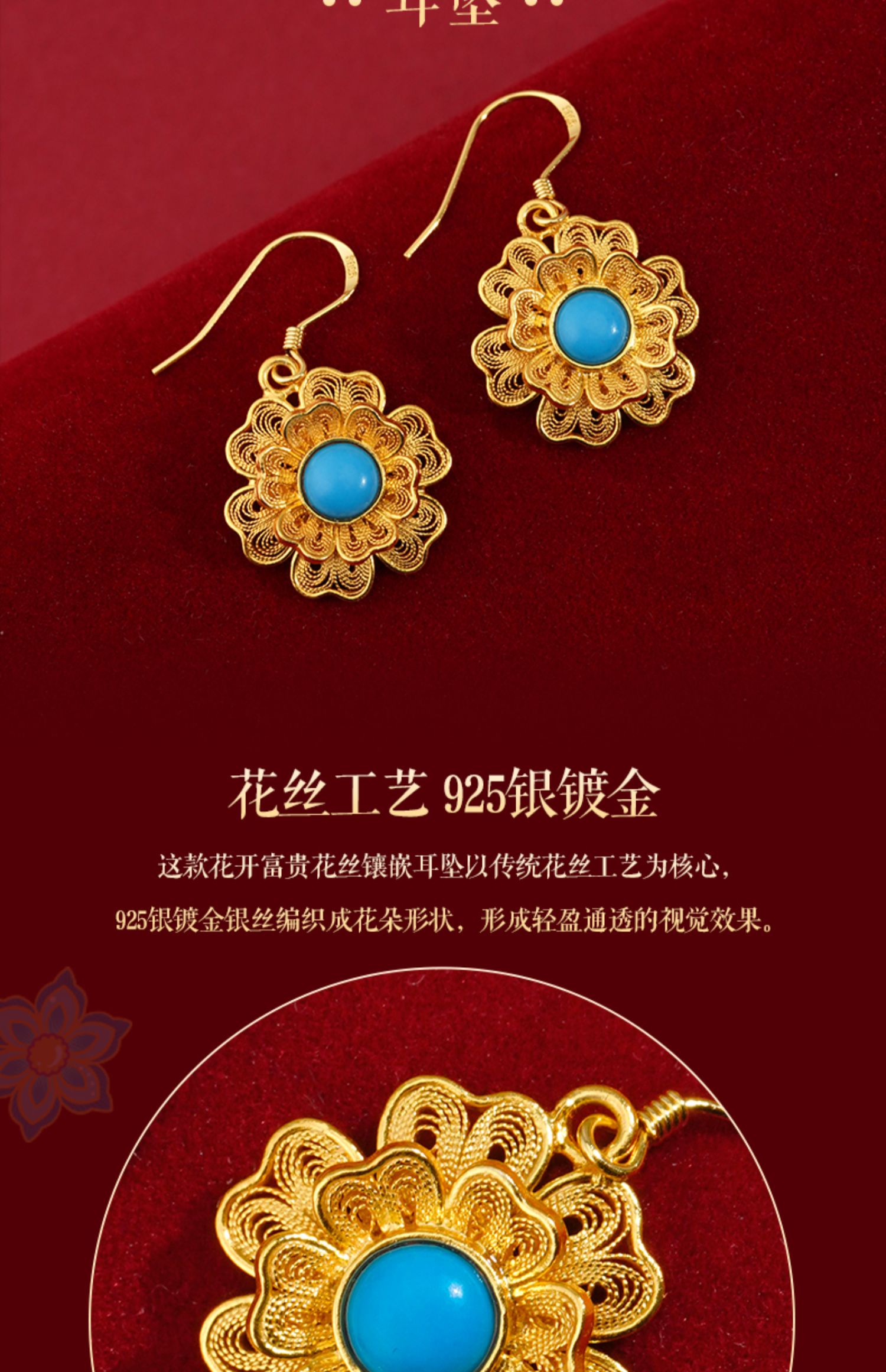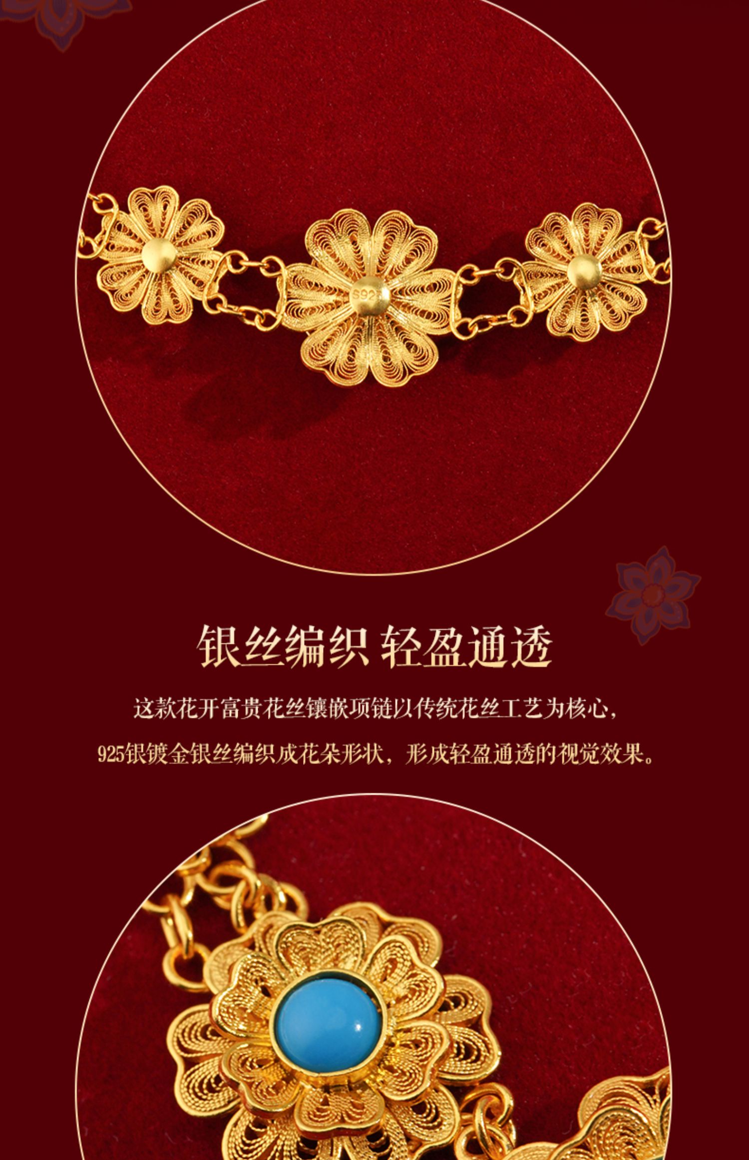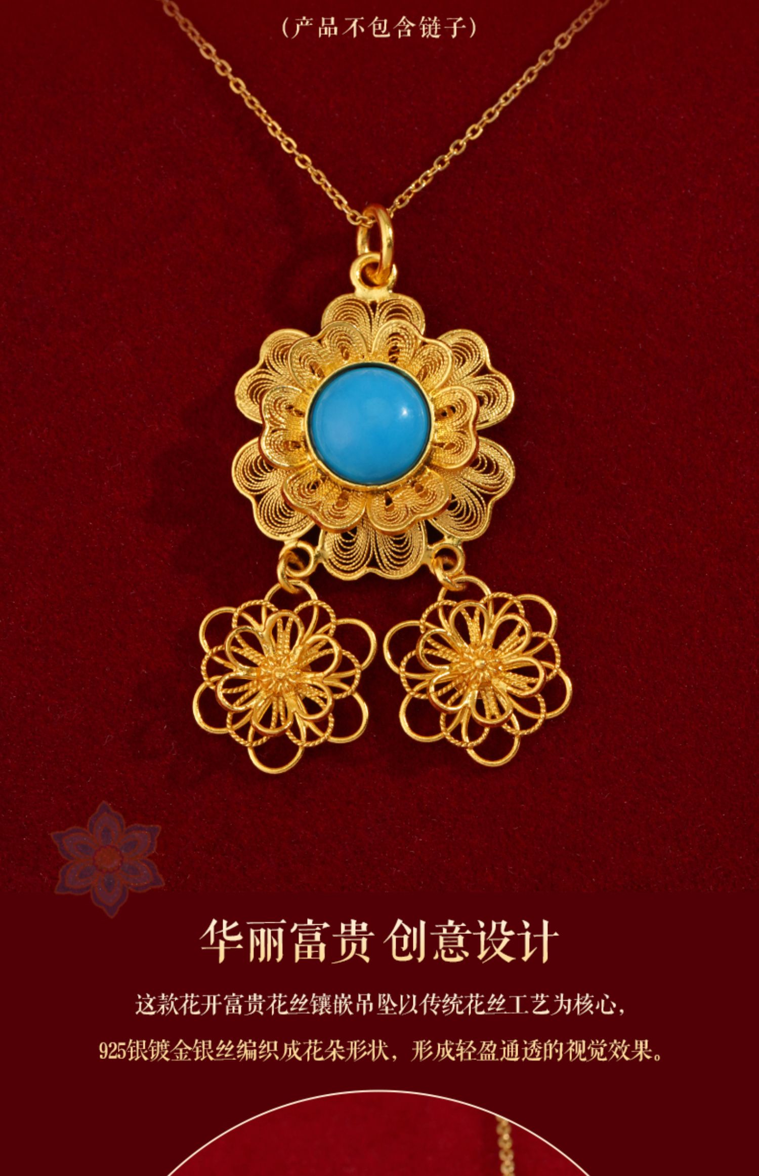 花开富贵花丝镶嵌系列首饰 项链 耳坠 吊坠