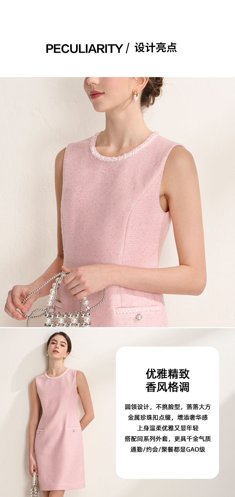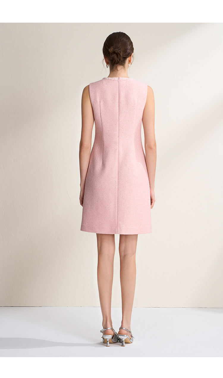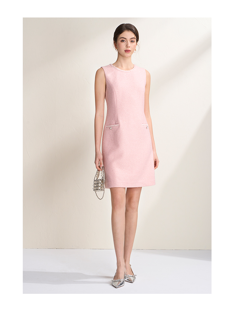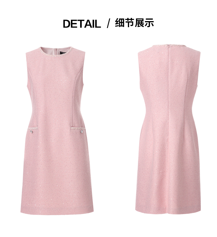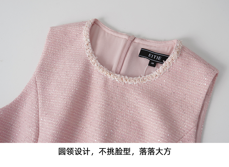 EITIE爱特爱亮片花纱优雅温柔花边圆领无袖小香风连衣裙A2607113