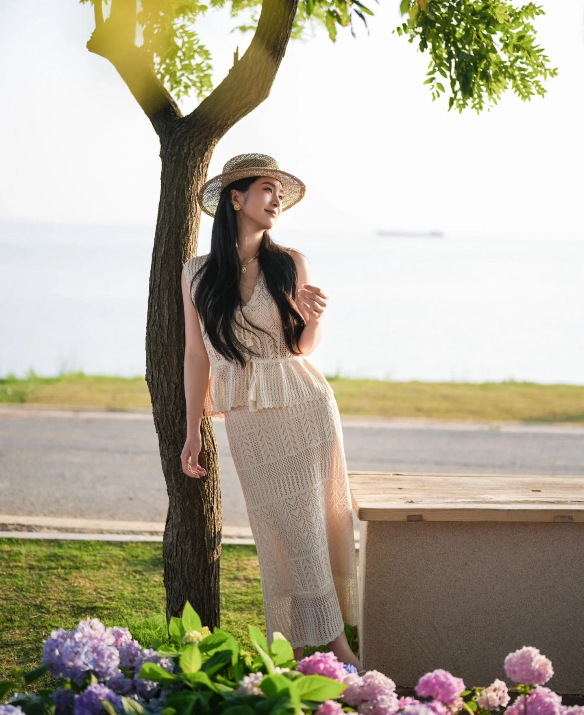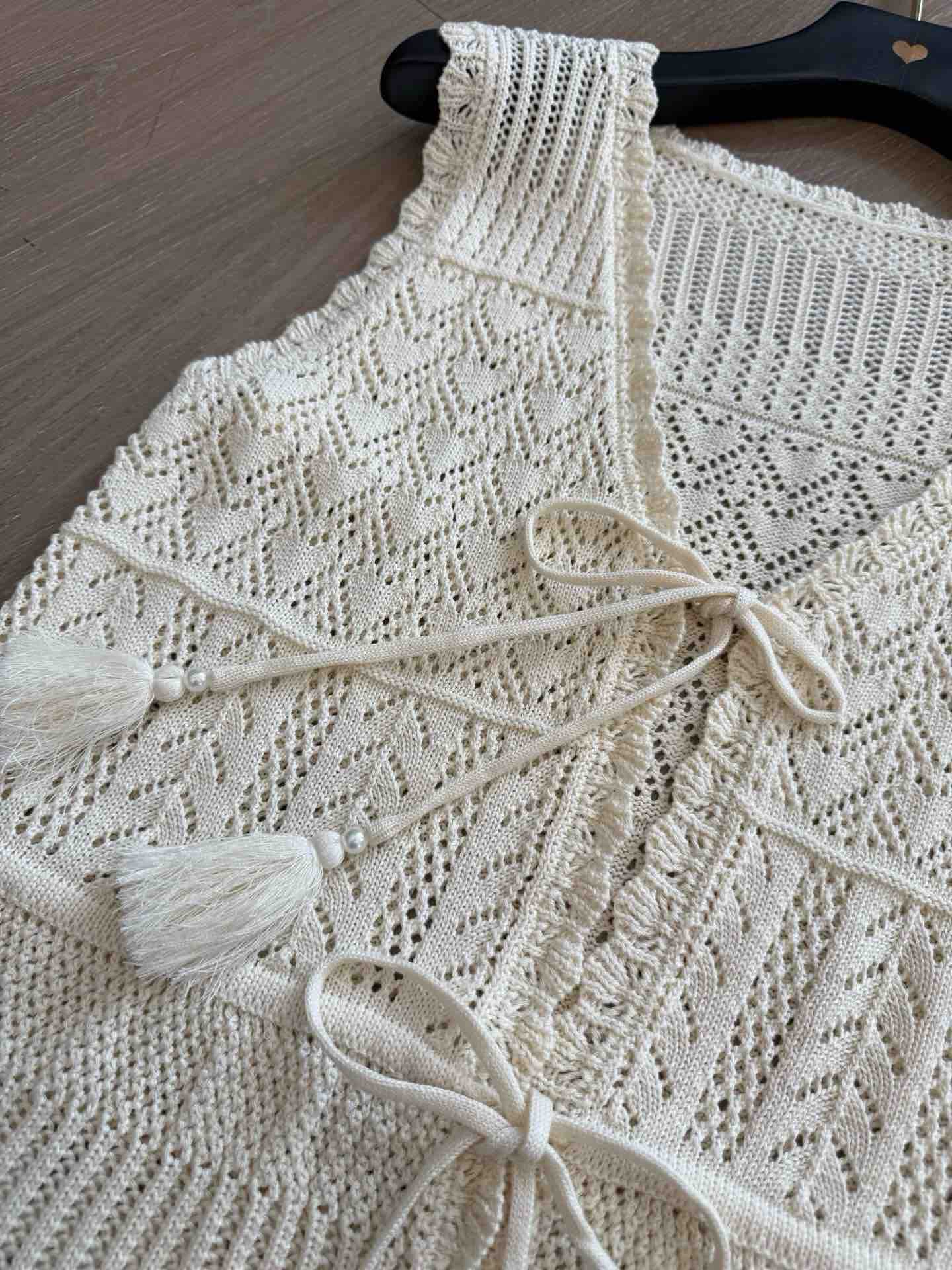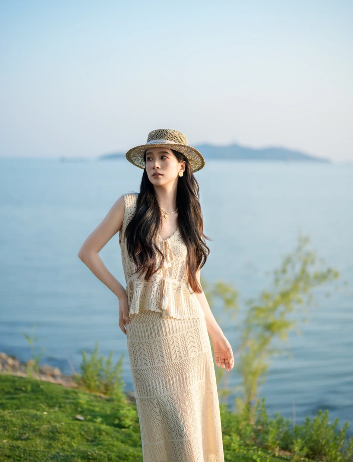 🔺𝐅𝐚𝐛𝐫𝐢𝐪𝐮𝐞 中世纪复古文艺镂空亚麻编织度假套装 镂空针织亚麻背心➕半裙套装