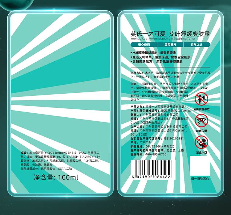 英氏液体爽身露婴儿专用宝宝爽肤露新生幼儿晒后舒缓芦荟叶爽肤水