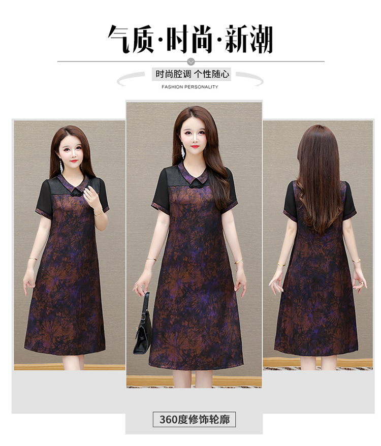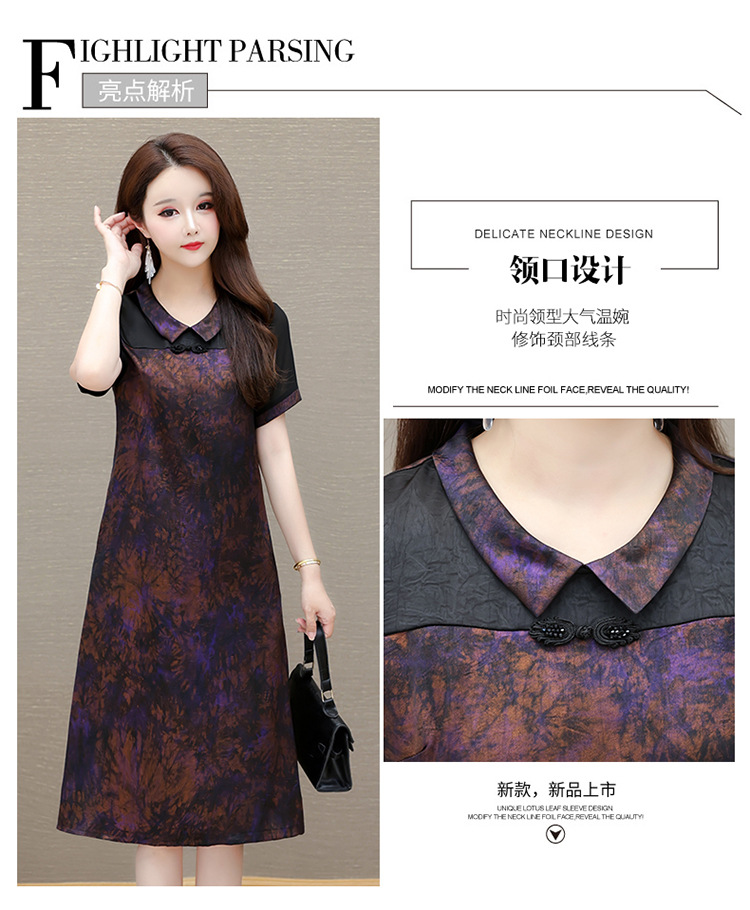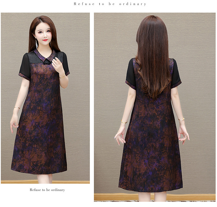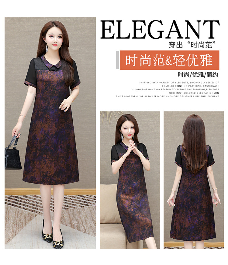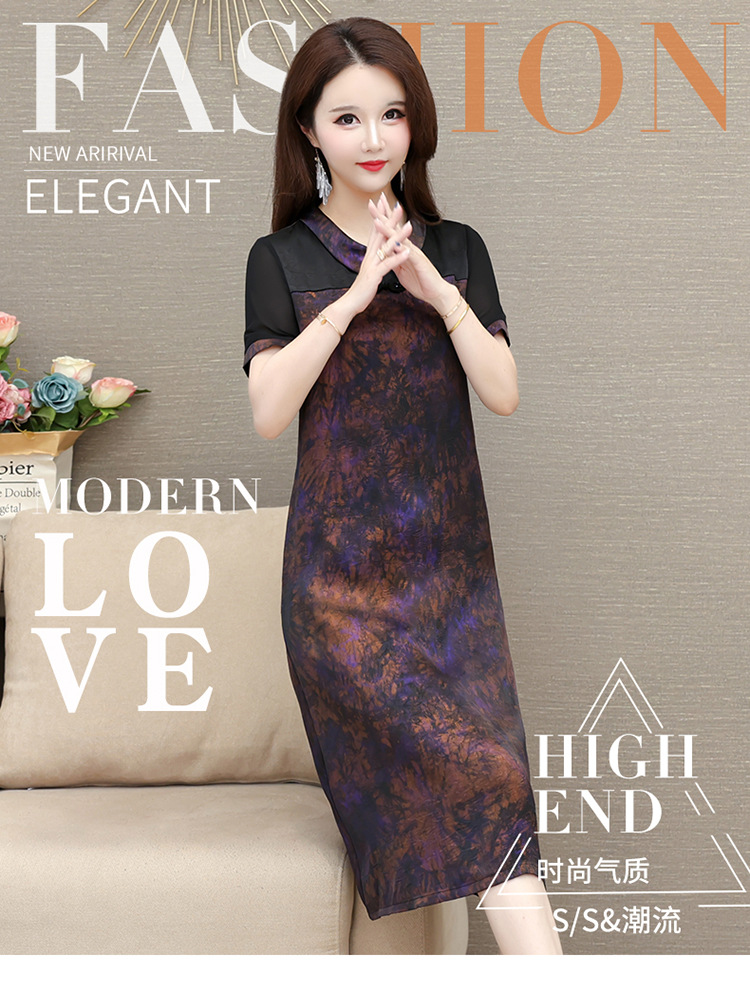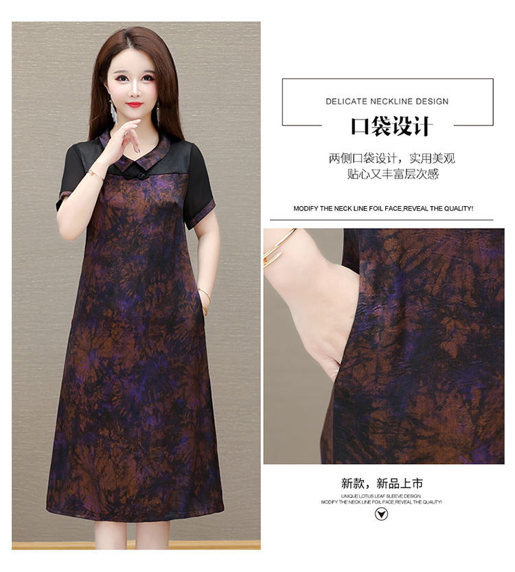 新中式改良旗袍连衣裙,洋气妈妈装短袖A字裙QYM-LRX-SD58675-Y
