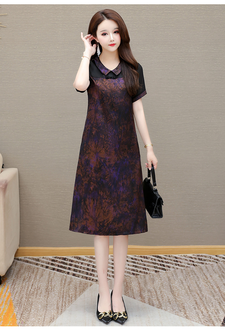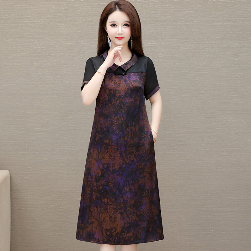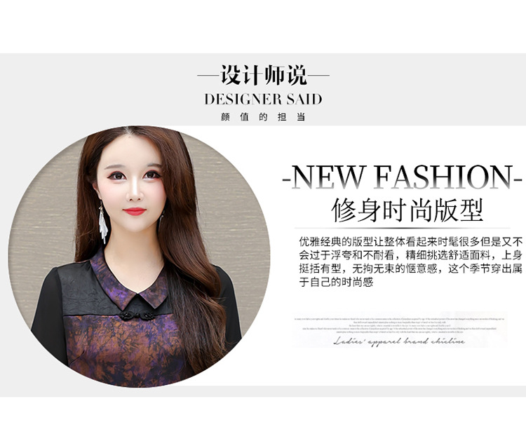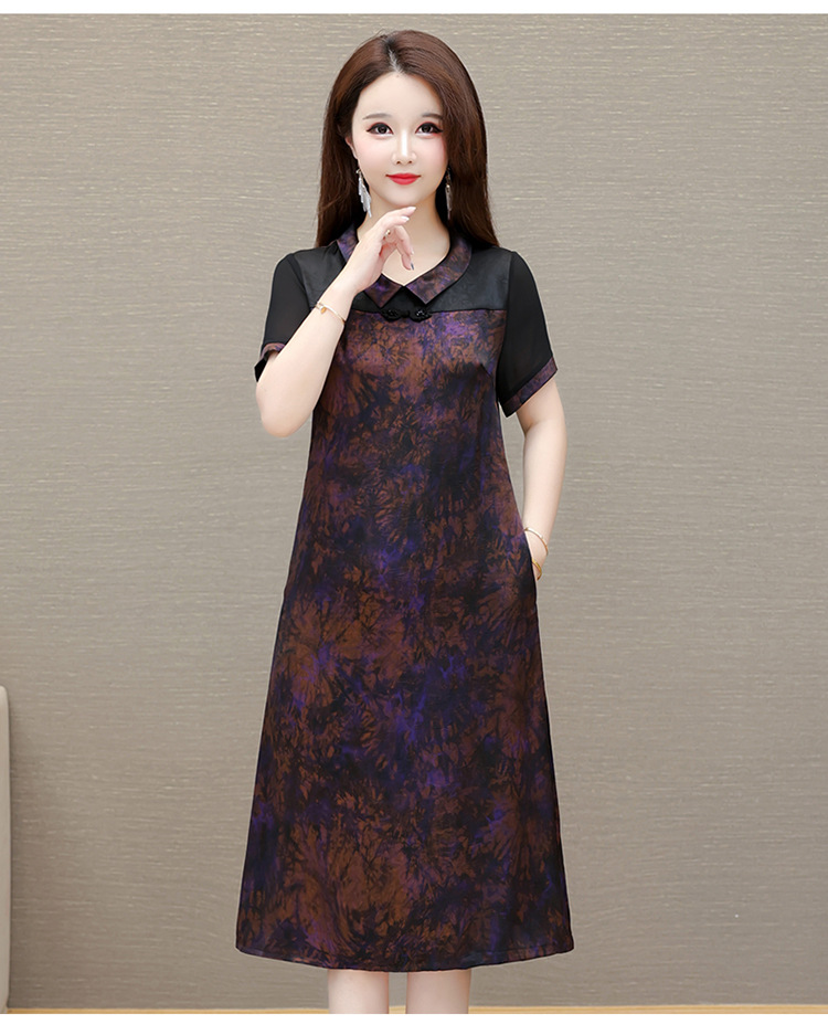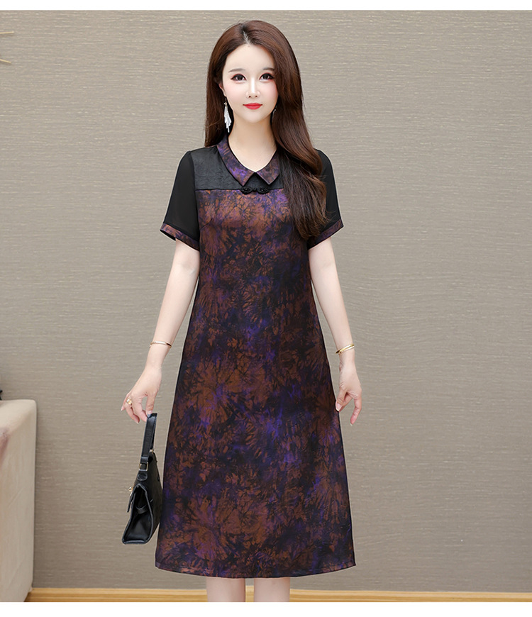 新中式改良旗袍连衣裙,洋气妈妈装短袖A字裙QYM-LRX-SD58675-Y