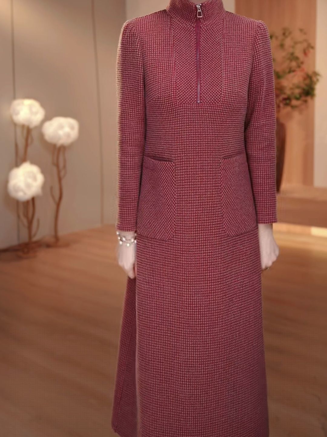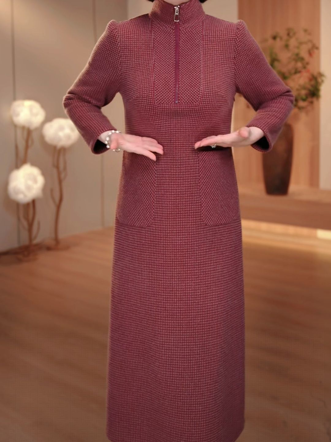 QYM C536加厚连衣裙妈妈绒面配大衣裙 商品图4