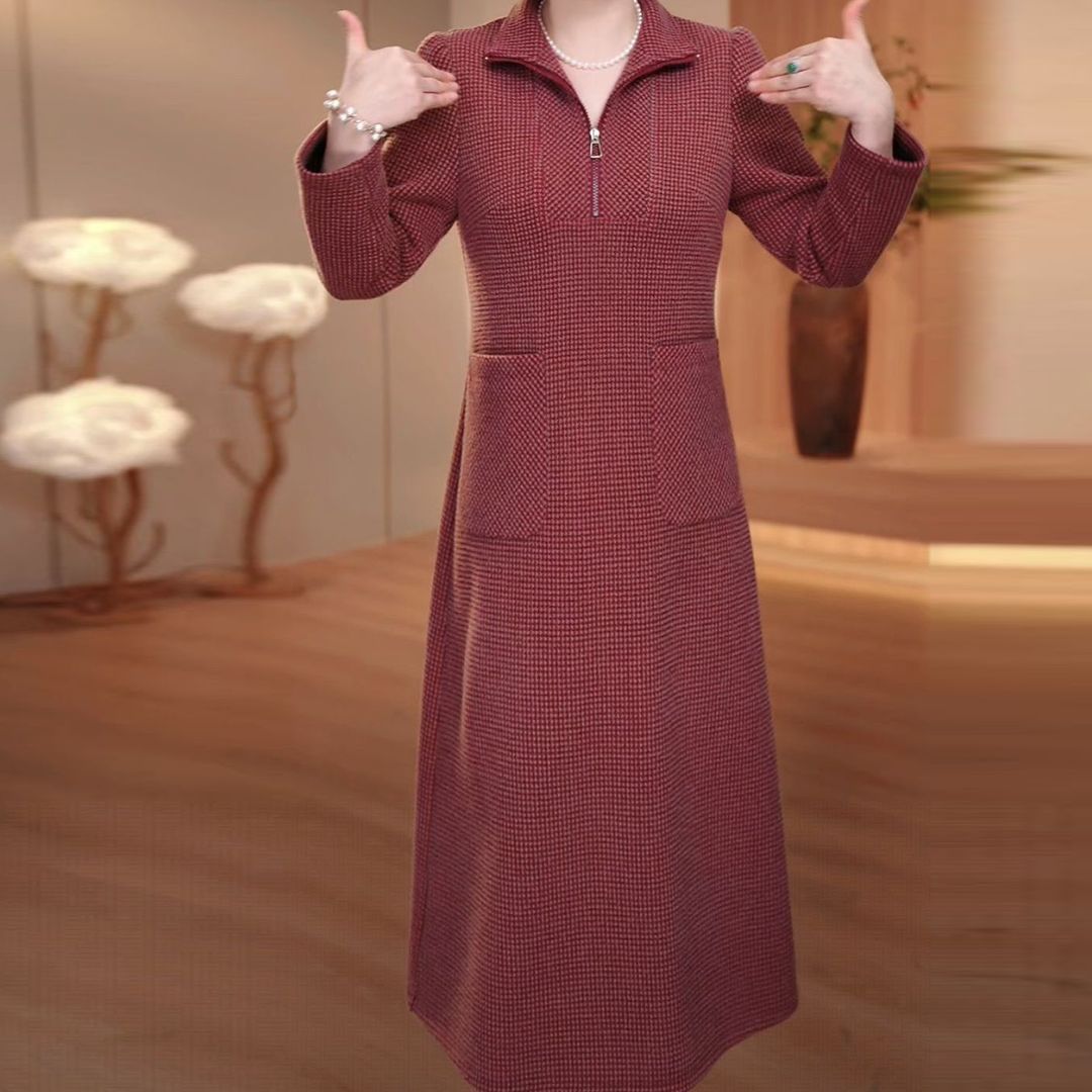 QYM C536加厚连衣裙妈妈绒面配大衣裙