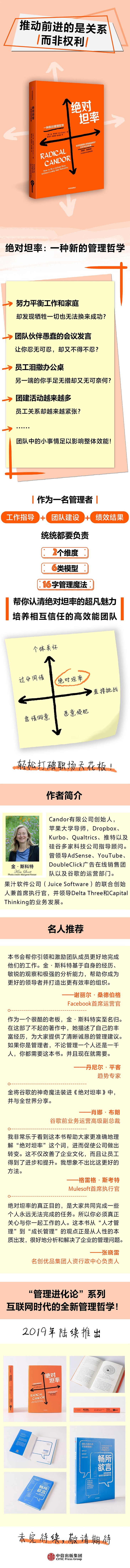 本书会帮你和激励团队成员更好地完成他们的工作。金·斯科特基于自身的经历、敏锐的观察和极强的分析能力,帮助你成为更好的并打造出更率的组织。