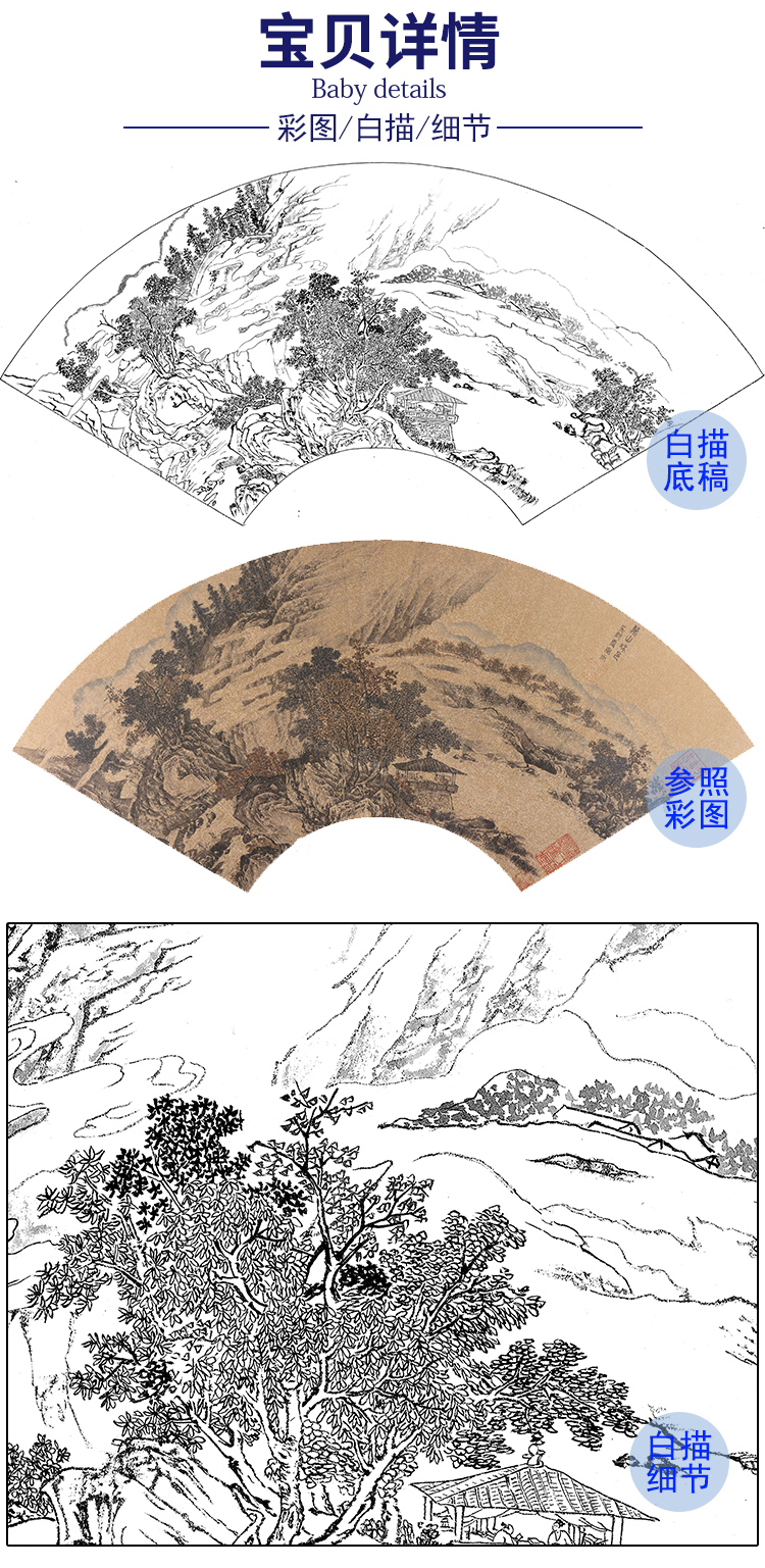 工笔画白描底稿 山水扇面小品 明 唐寅 SR19