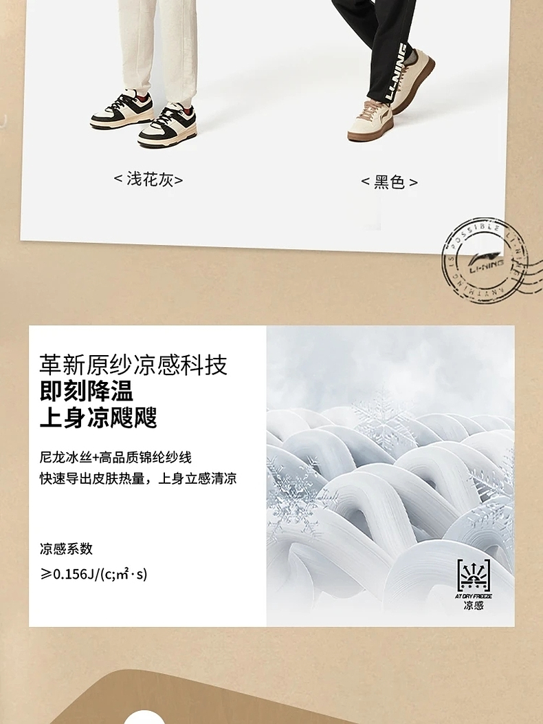 【抄底!299任选2件】李宁2025夏款运动潮流系列男子束脚冰感舒适吸湿排汗卫裤AKLV221