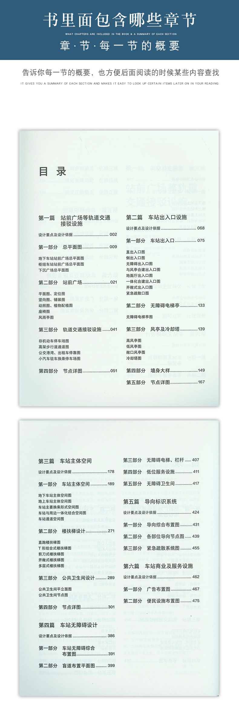 本图集范围包括:本图集以北京地铁10号线、5号线、6号线及其他城市轨道交通车站设计实践为主要依据,内容包括站外广场、车站出入口到车站主体空间,系统性强、分类明确、选例丰富、适应地铁设计和建设实践中遇到的多种问题。