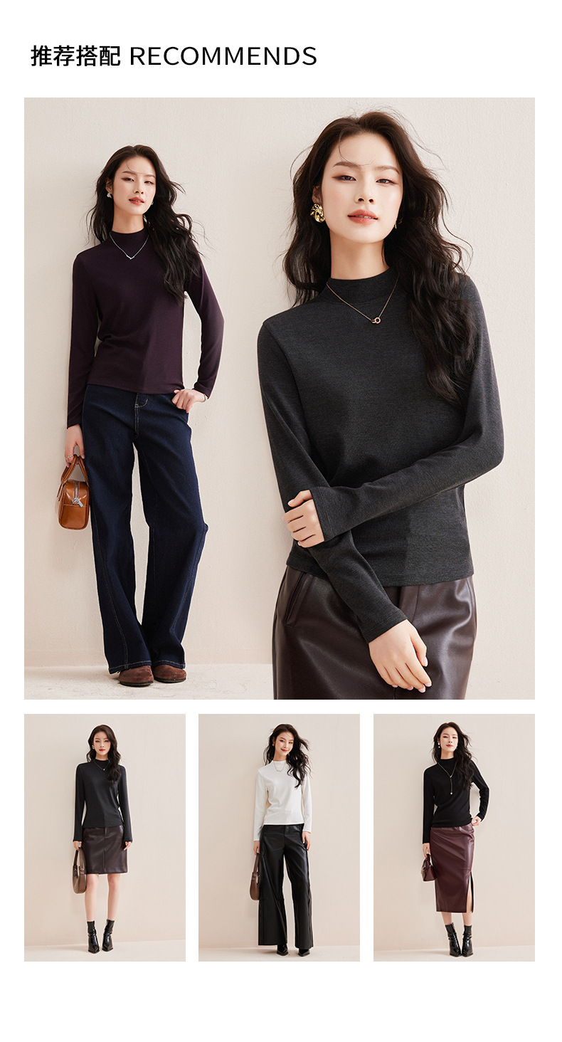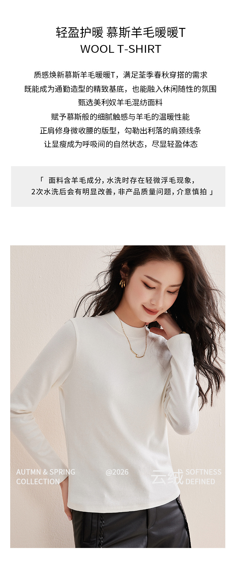 「自j」全新升级【铂金会员137/天猫179/差价42】(02904)洛诗琳气质慕斯羊毛打底衫2025秋冬新款显瘦半高领保暖上衣
