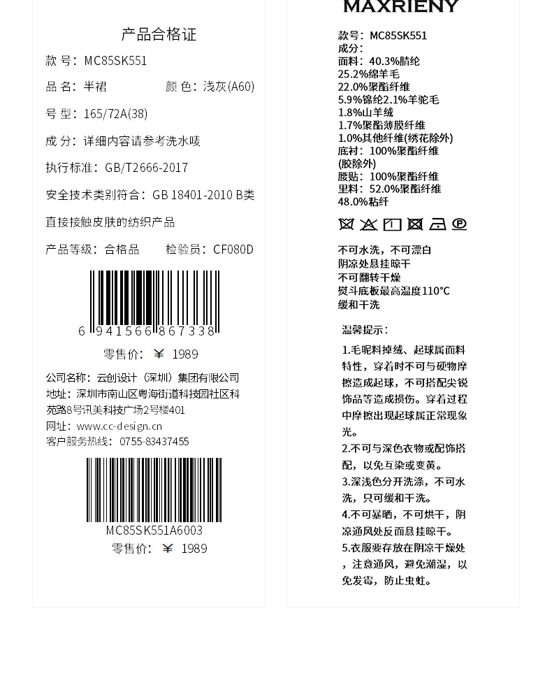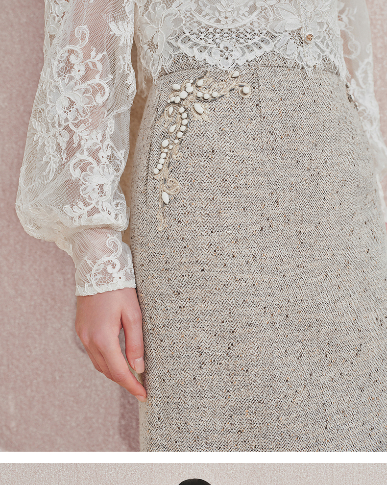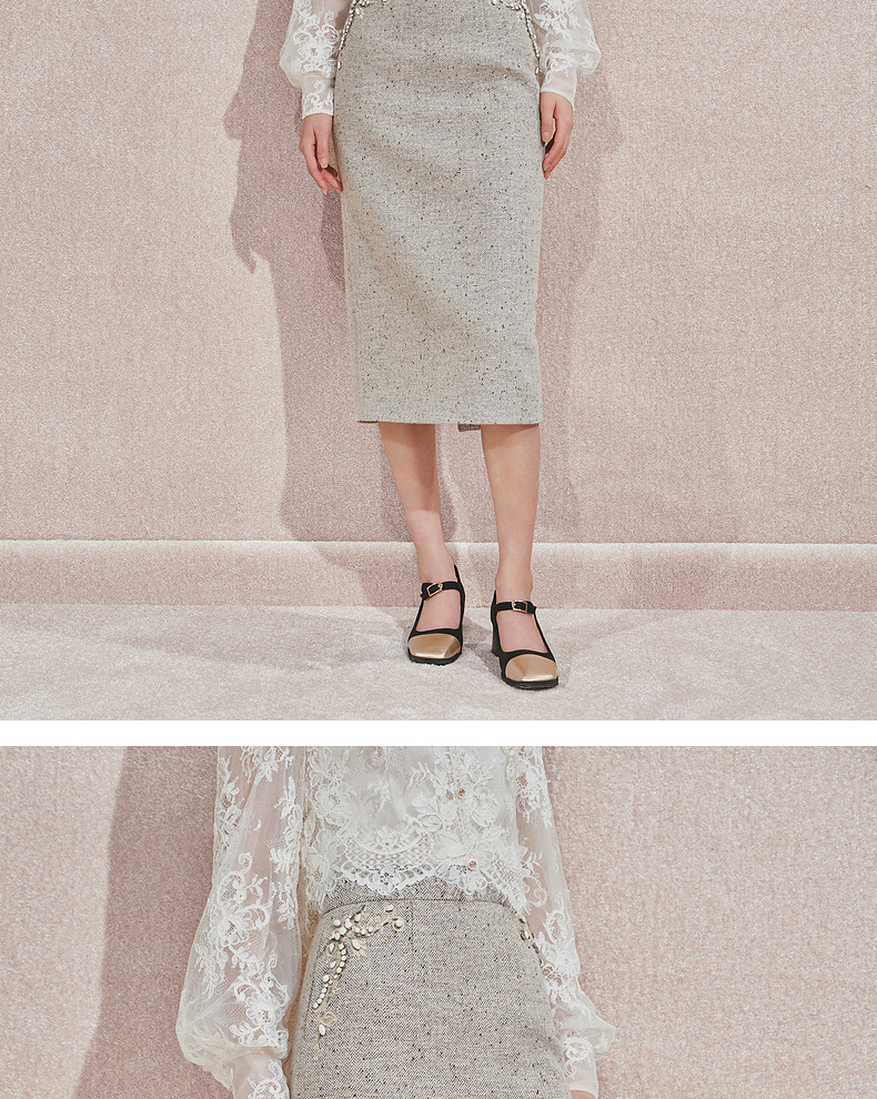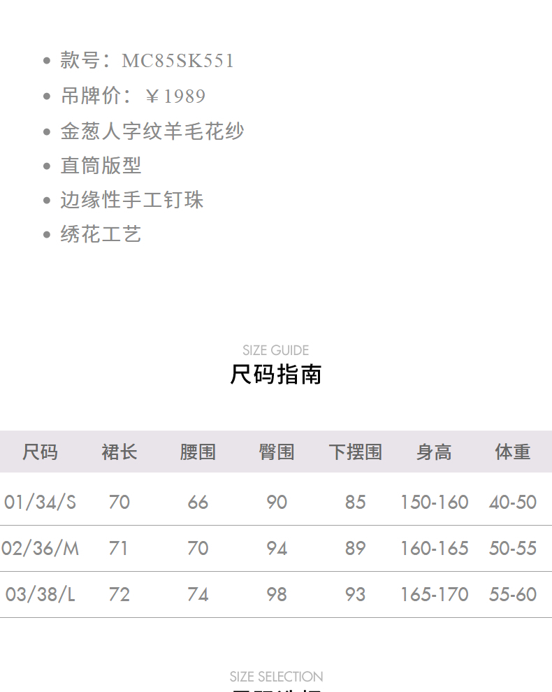 玛克门店发货:MAXRIENY*日常绣花直筒半裙(货号:MC85SK551)