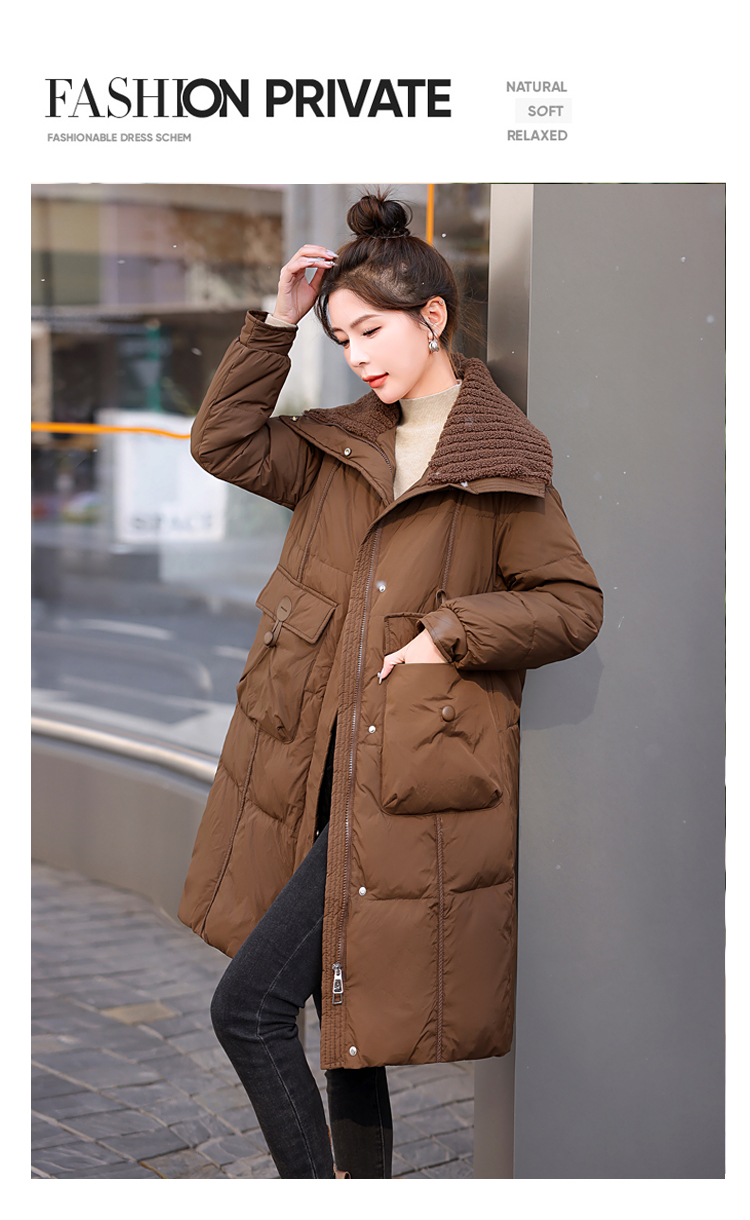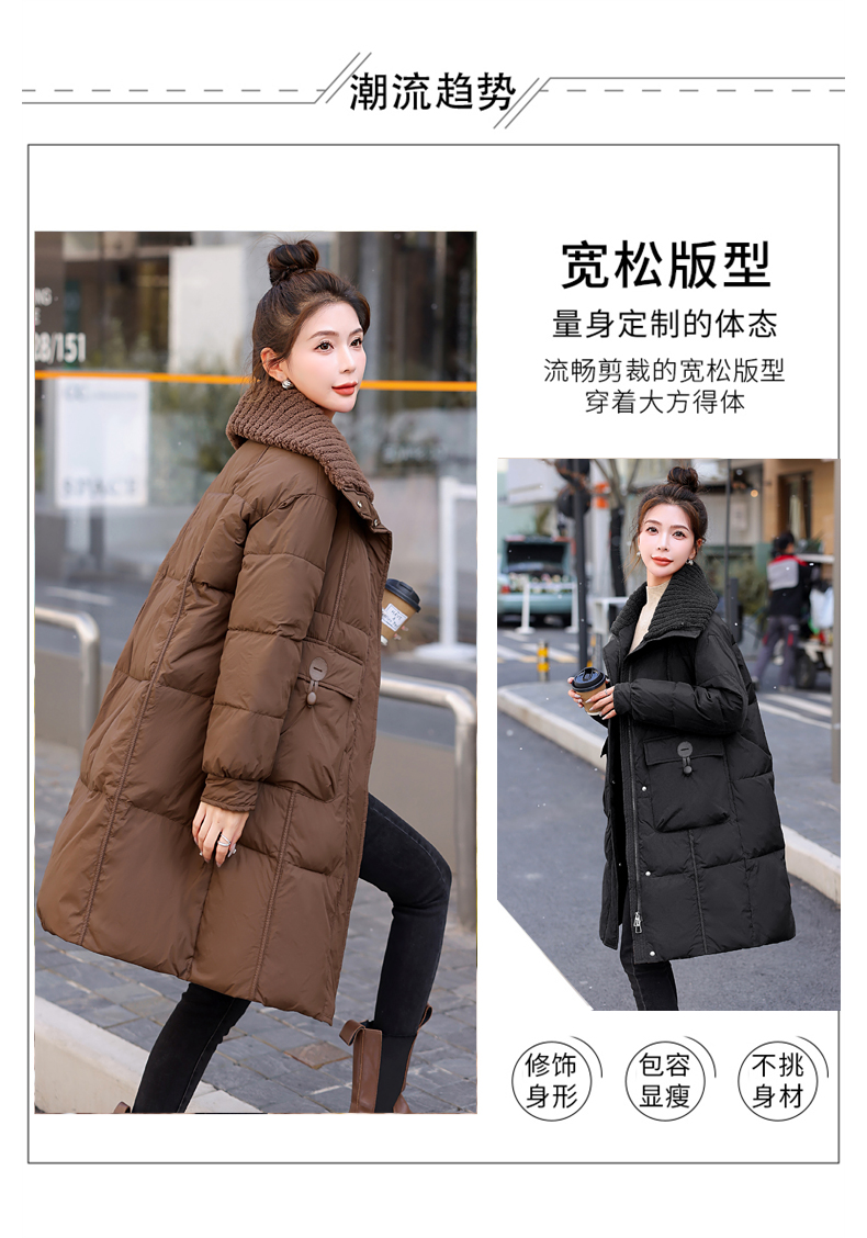 冬季新款,拼接加厚中长款羽绒服女白鸭绒防寒外套HR-MUQQ686