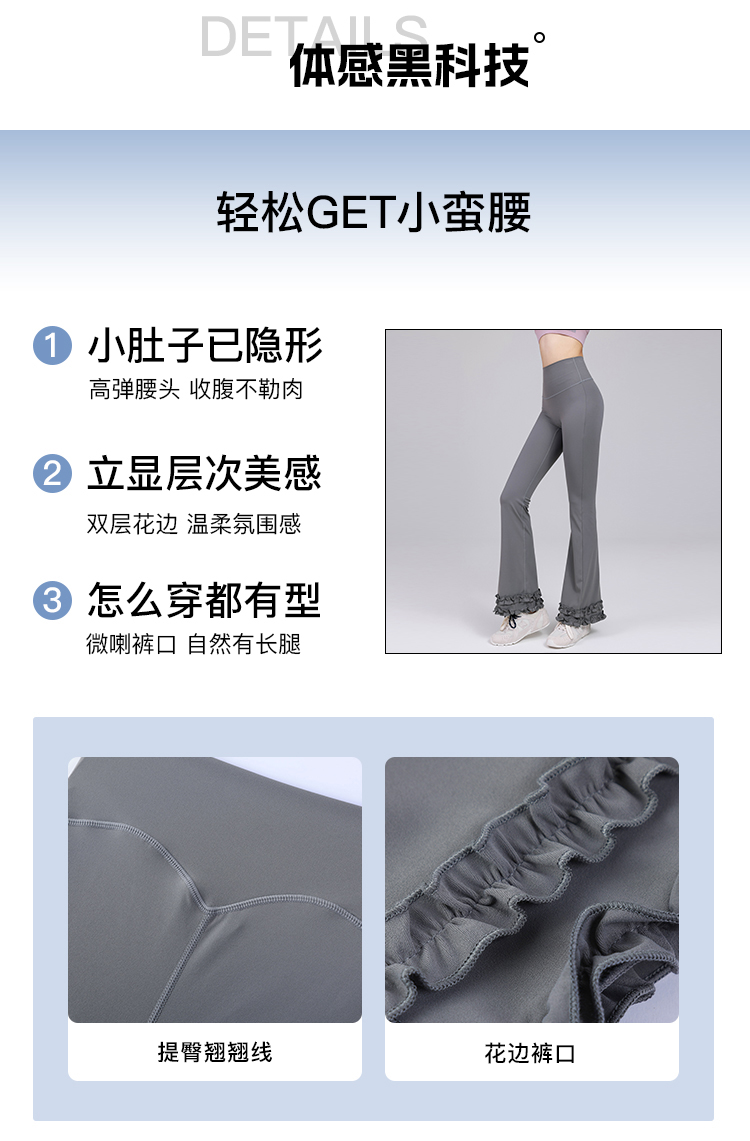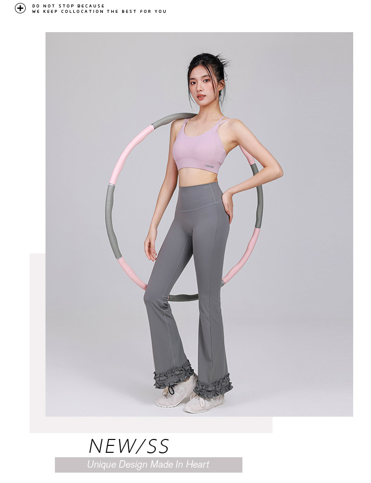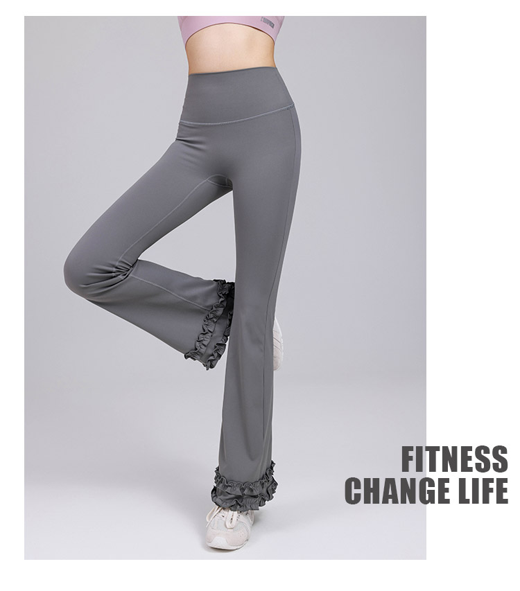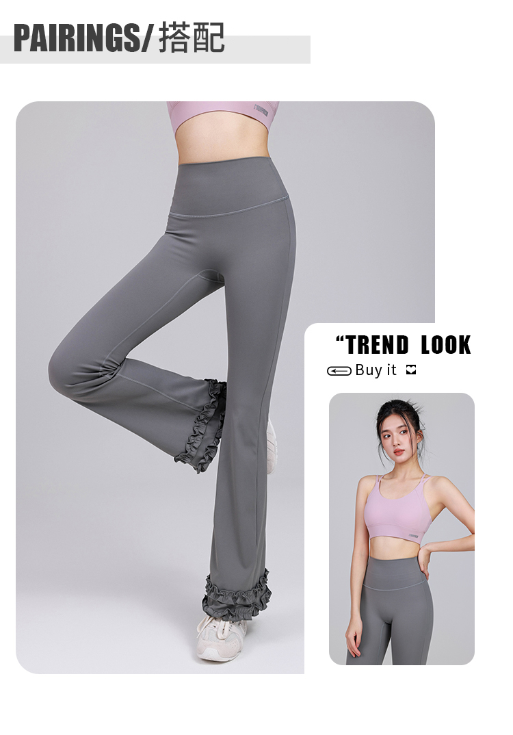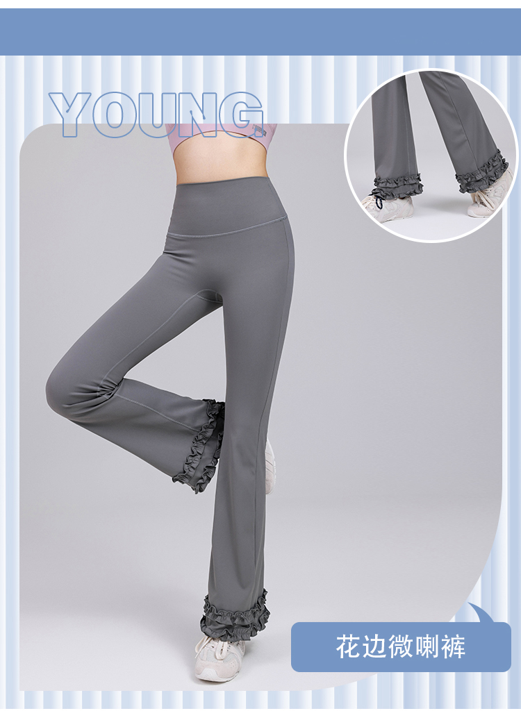 跃牌【禅语梵心】高腰花边显瘦喇叭裤长裤修身瑜伽裤女提臀跑步运动裤健身裤CK3469