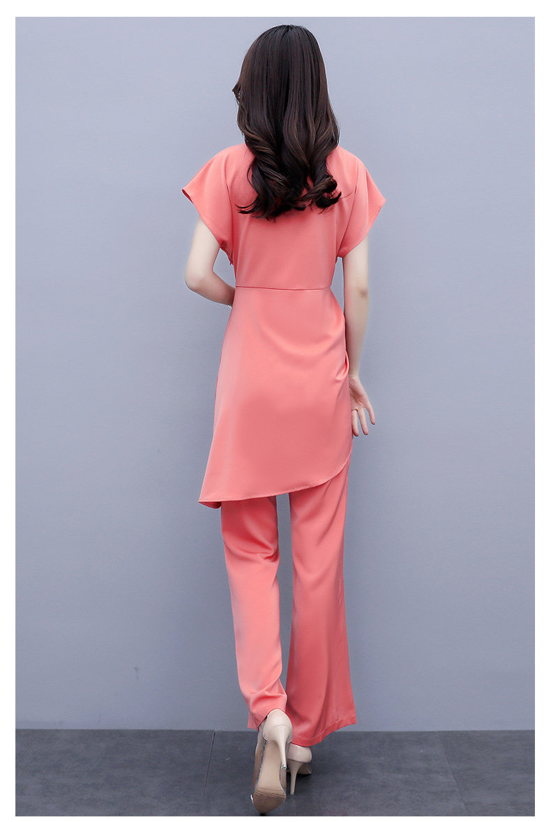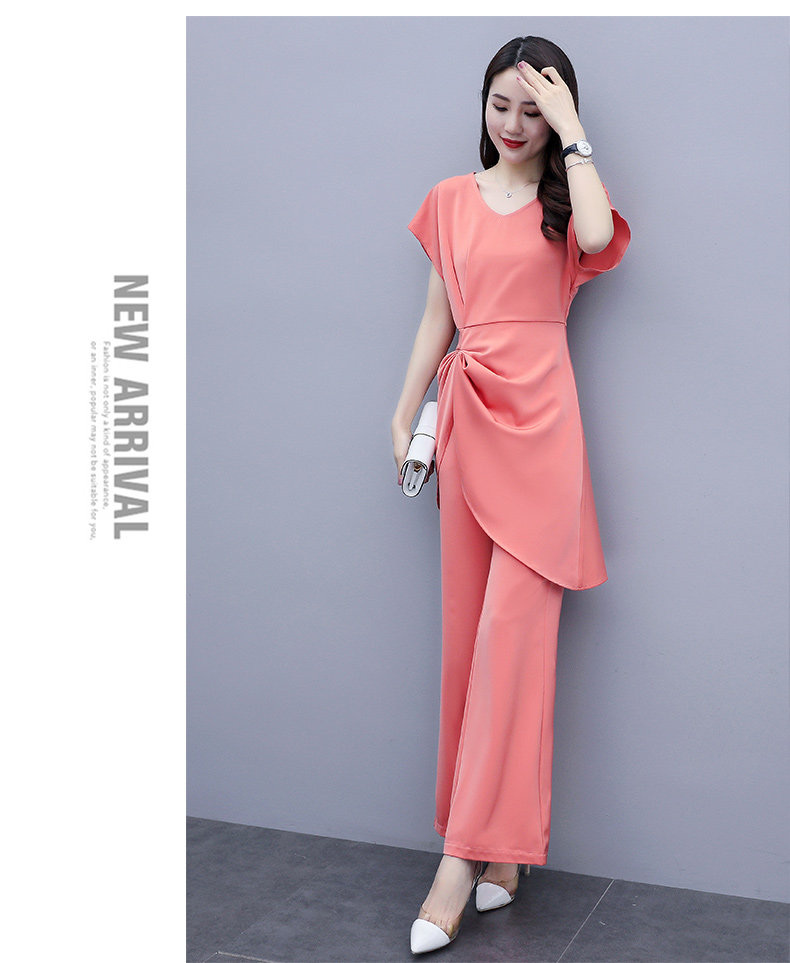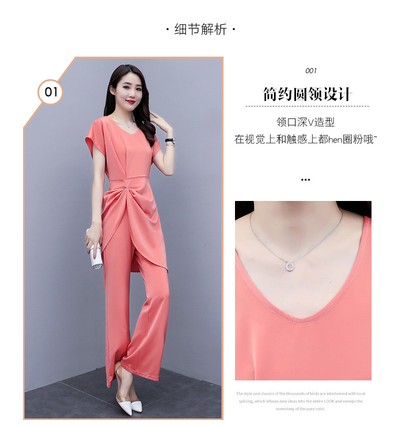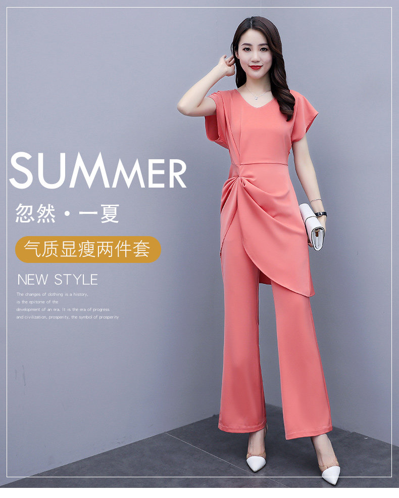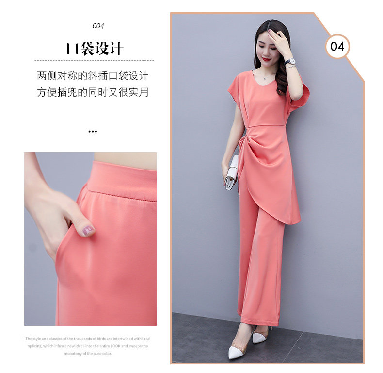 WZNH-SYG2012夏季纯色圆领优雅短袖潮流两件套