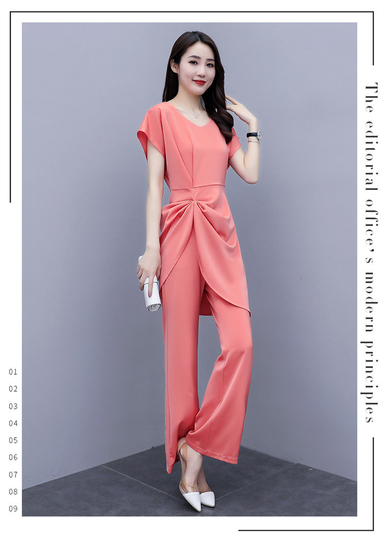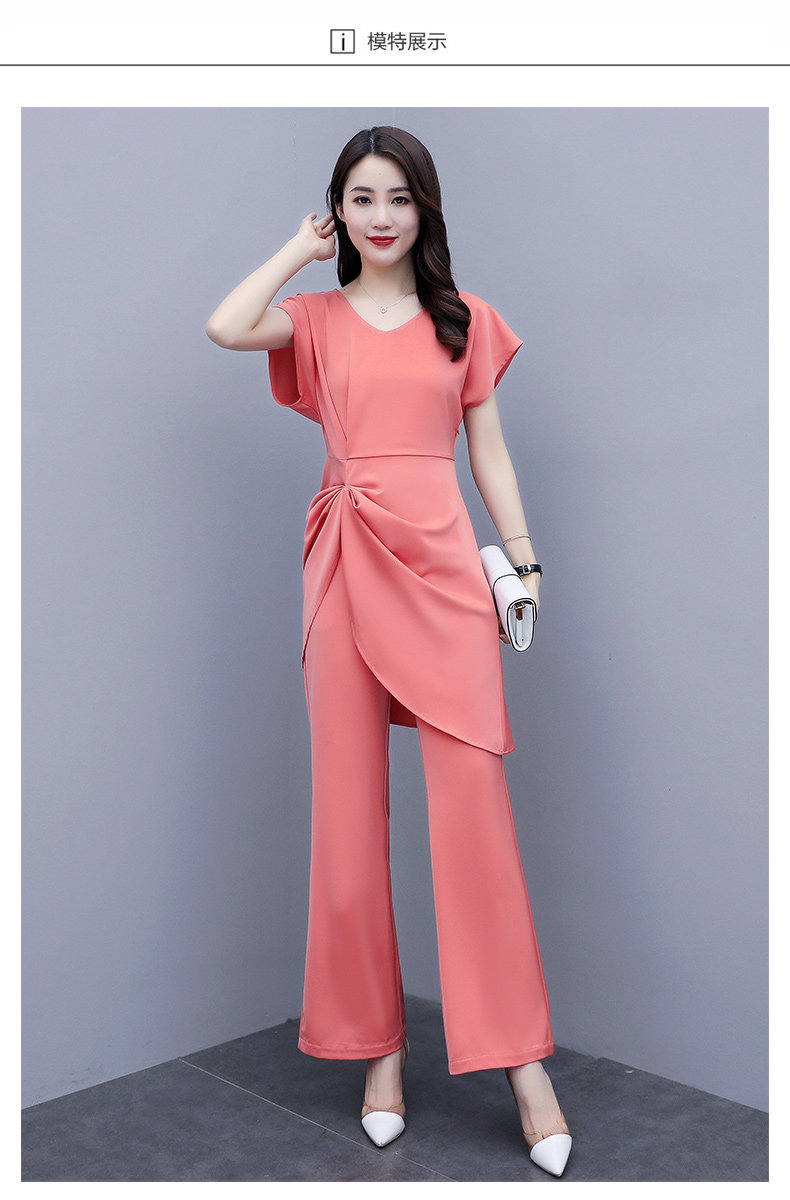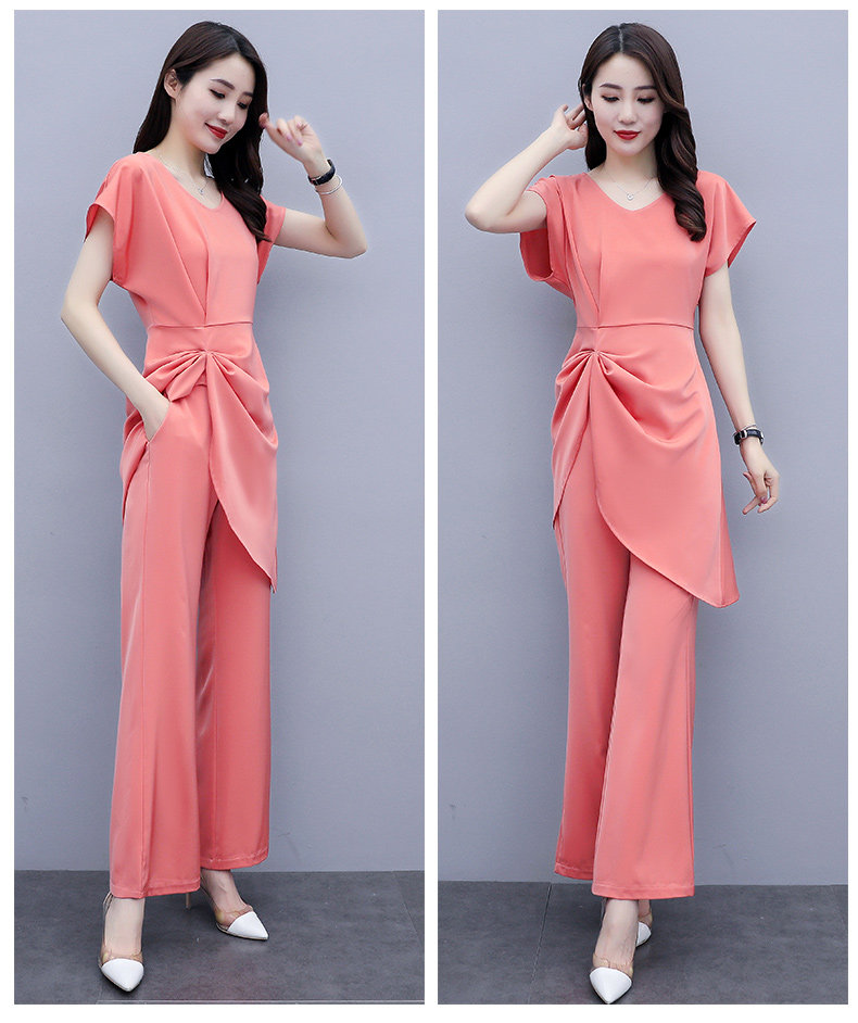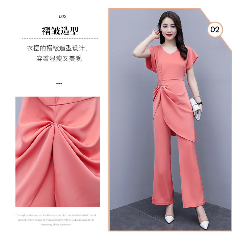WZNH-SYG2012夏季纯色圆领优雅短袖潮流两件套