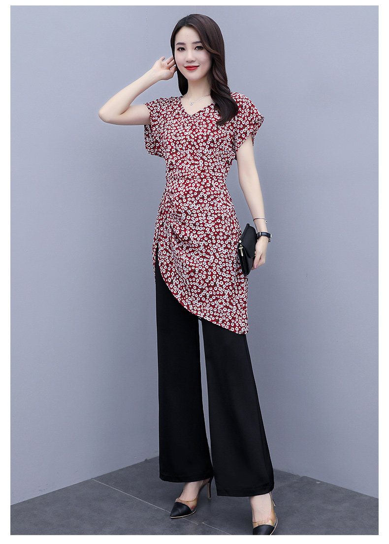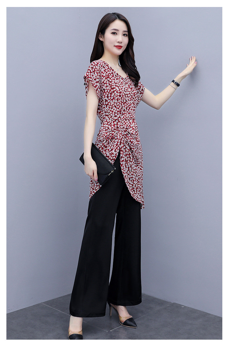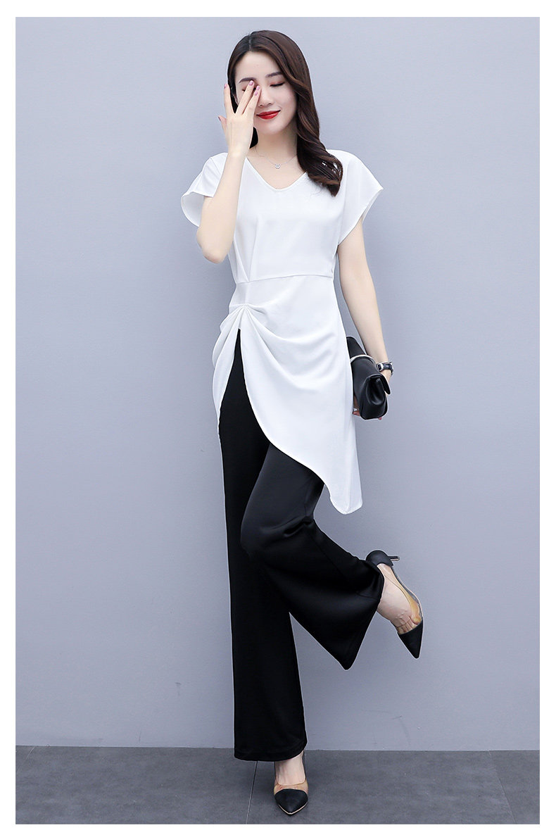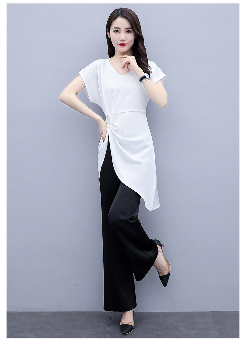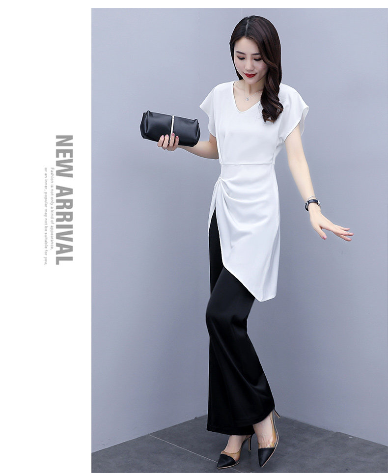 ZYQS-G0180时尚气质冰丝高腰垂感阔腿裤两件套
