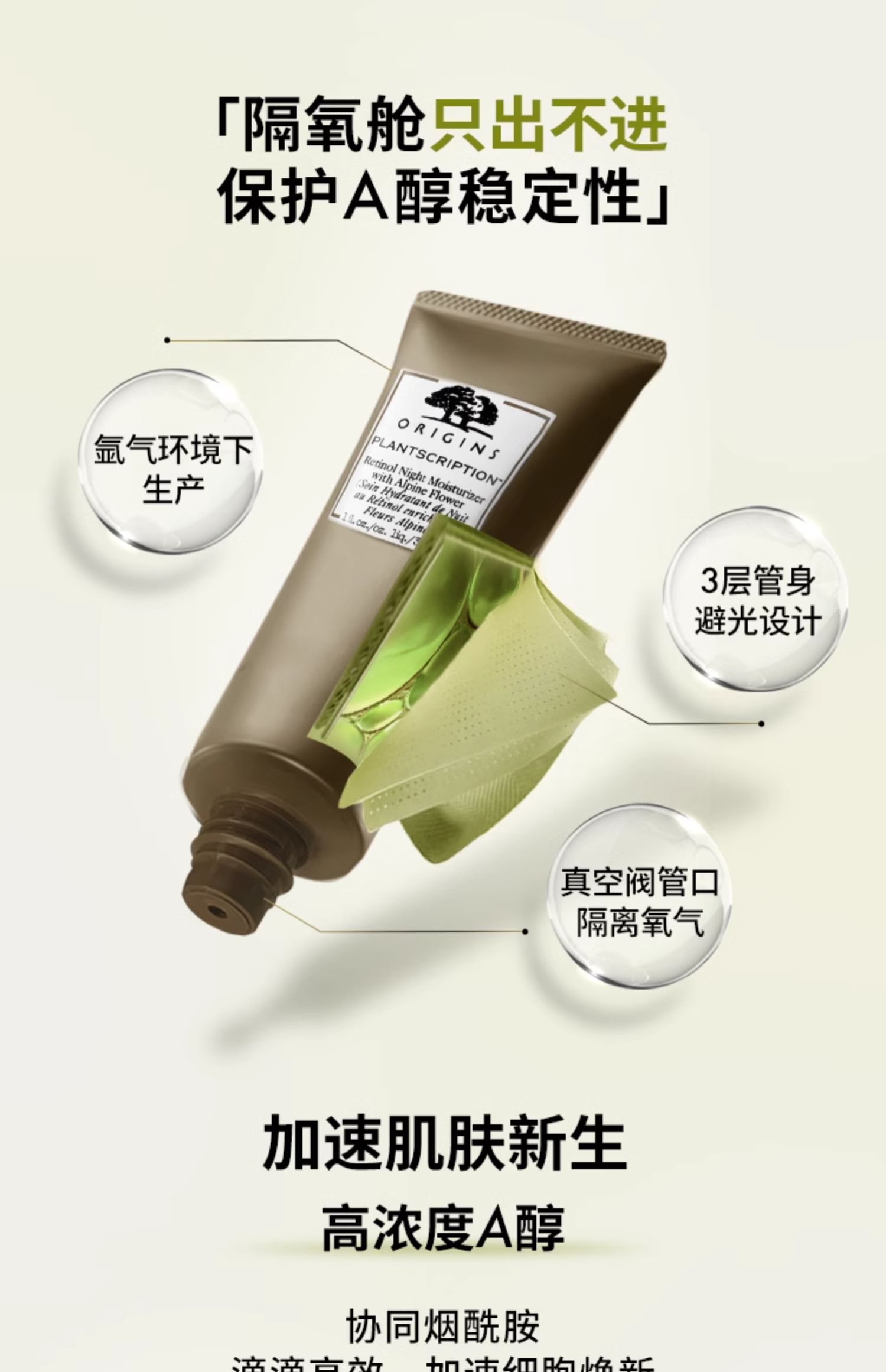 *Origins悦木之源青春抚纹焕亮视黄醇晚霜