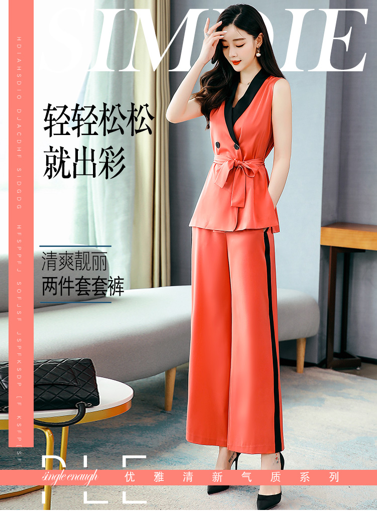 WZNH-YUMEI2017时尚潮流个性修身气质阔腿裤高端两件套
