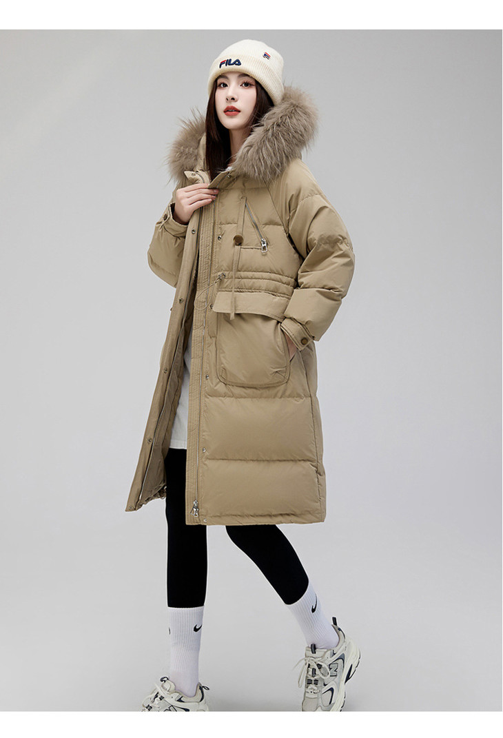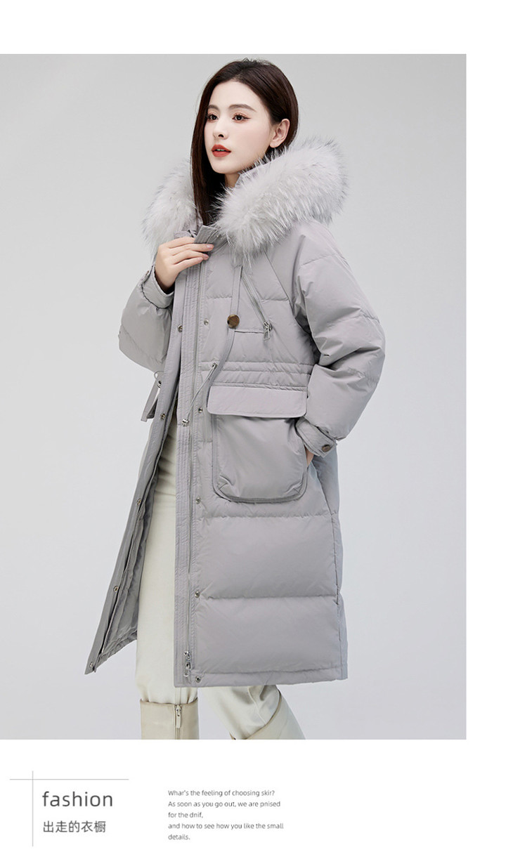 加厚宽松休闲过膝貉子毛可拆卸长款羽绒服HR-WL86269