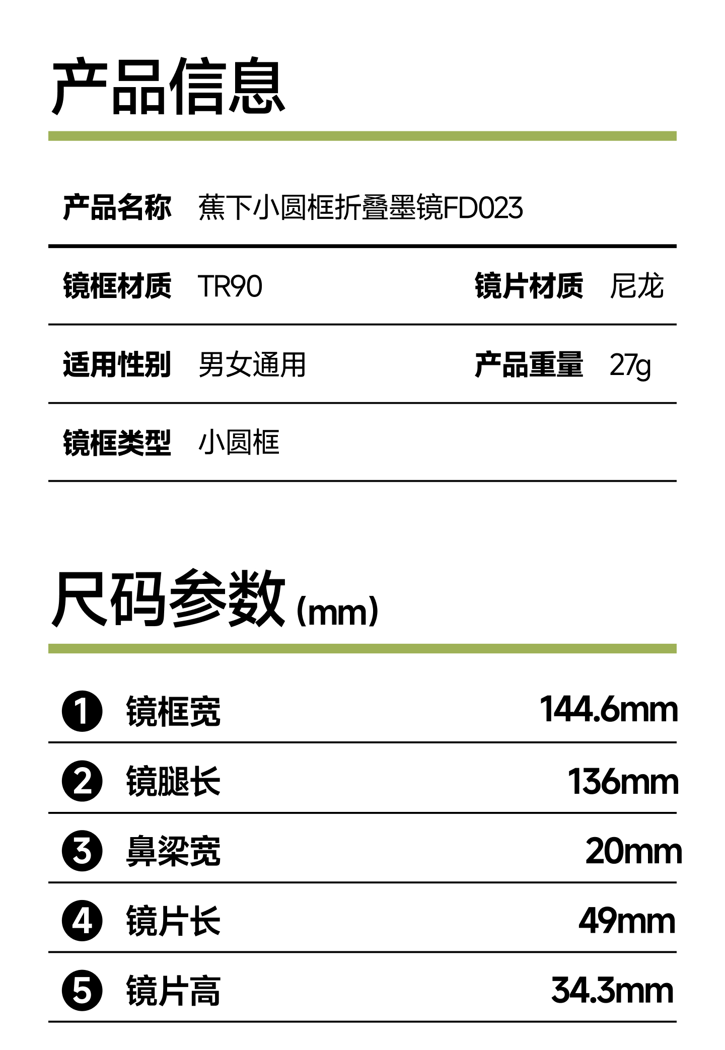 【26春夏新品】蕉下小圆框折叠墨镜FD023