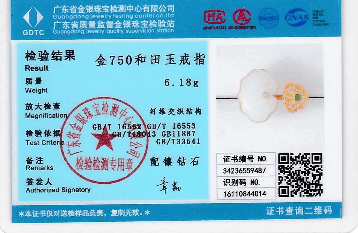 18K黄金和田玉(白玉) 戒指