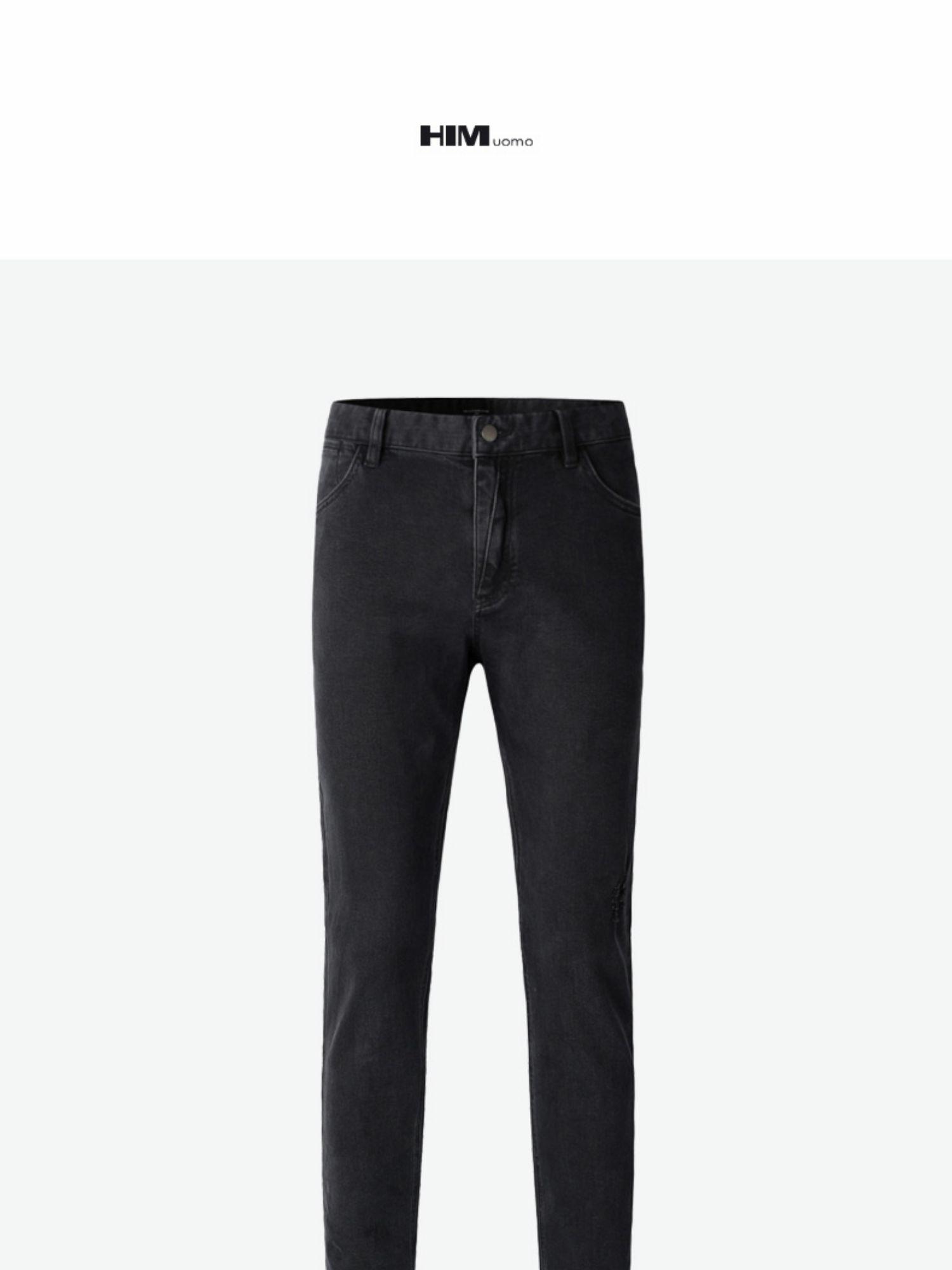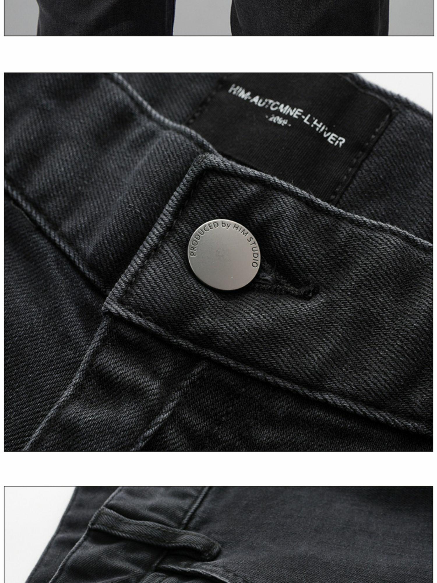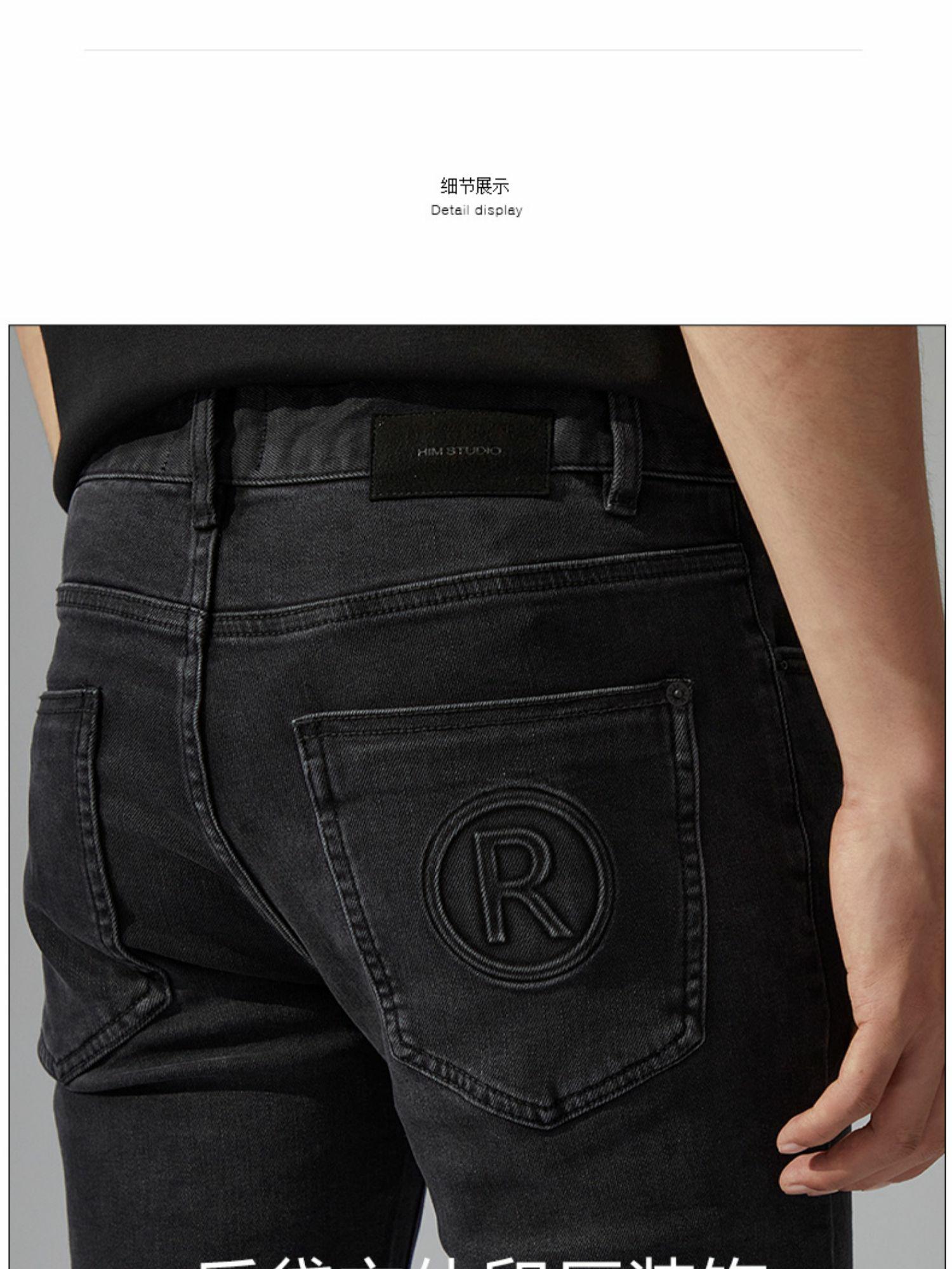 HIM漢崇 经典黑色洗水做旧修身弹力牛仔裤男【后袋压印】2025冬季