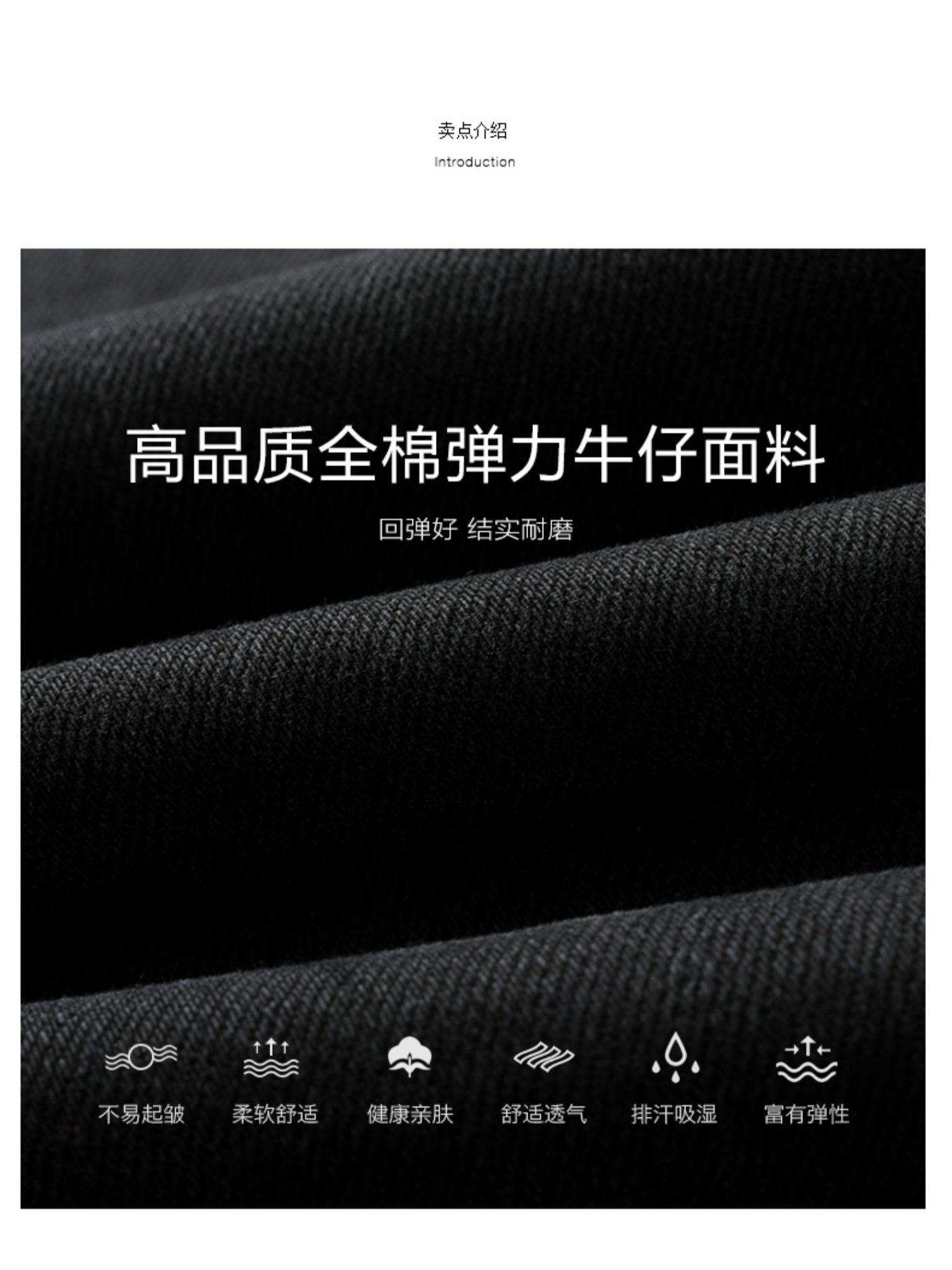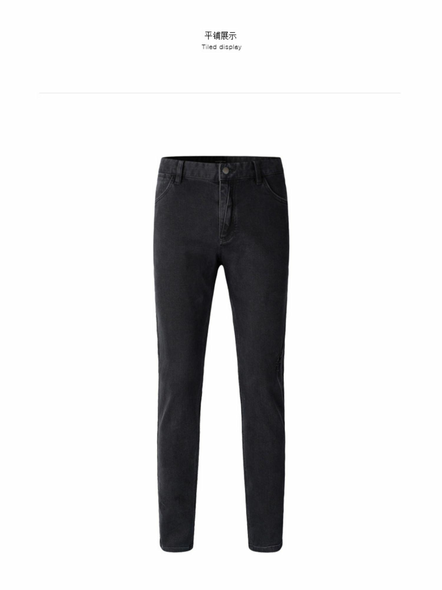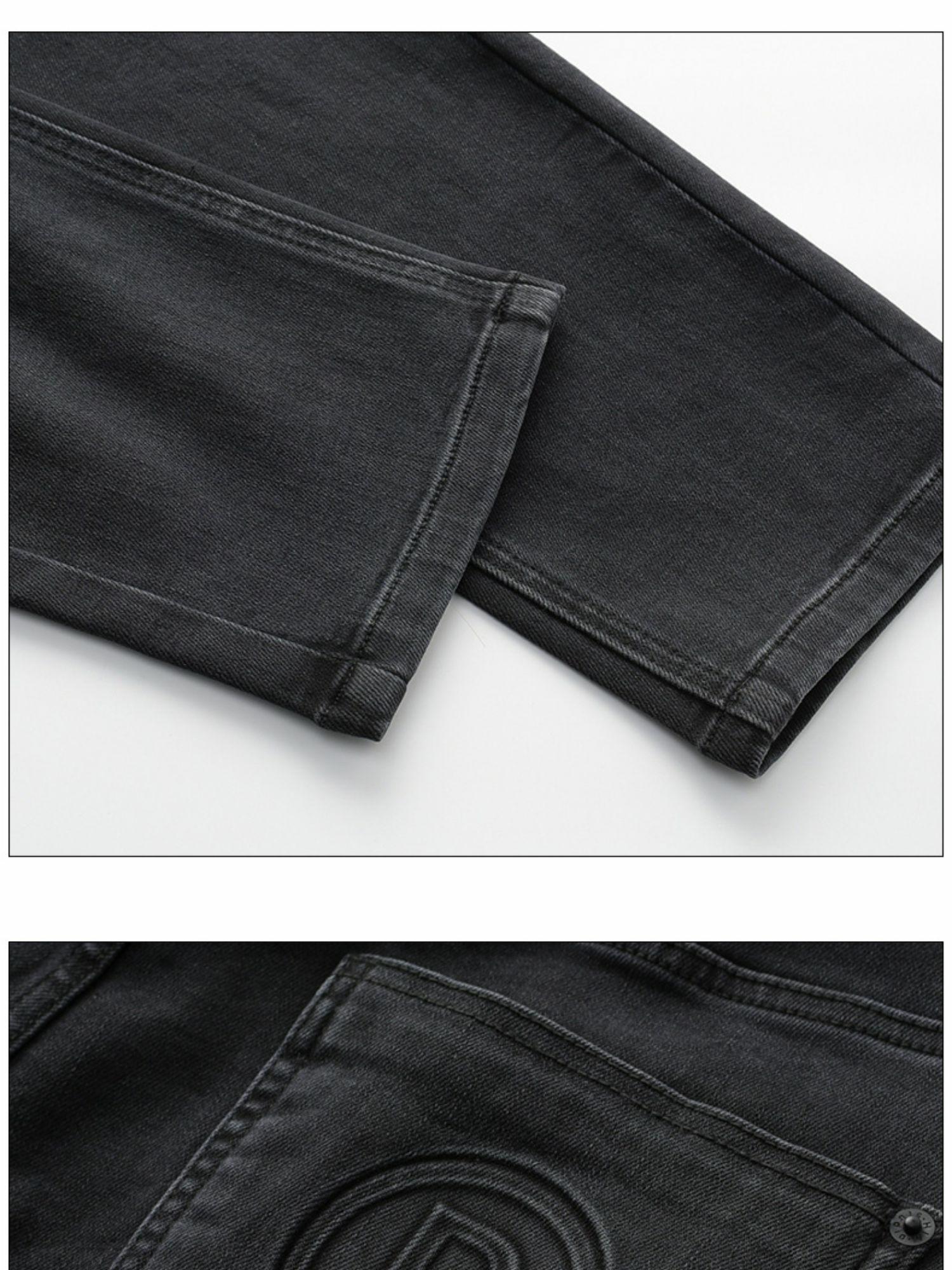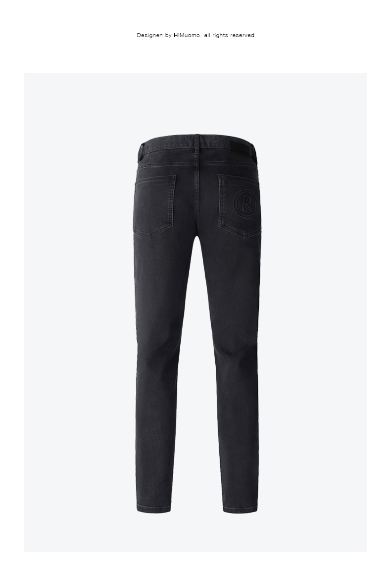 HIM漢崇 经典黑色洗水做旧修身弹力牛仔裤男【后袋压印】2025冬季