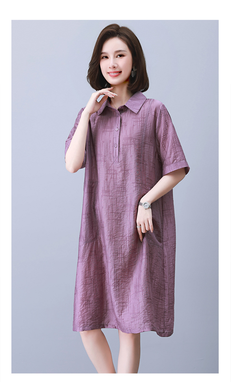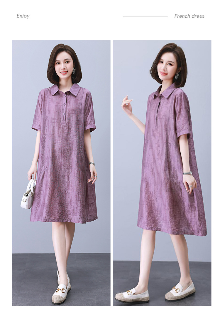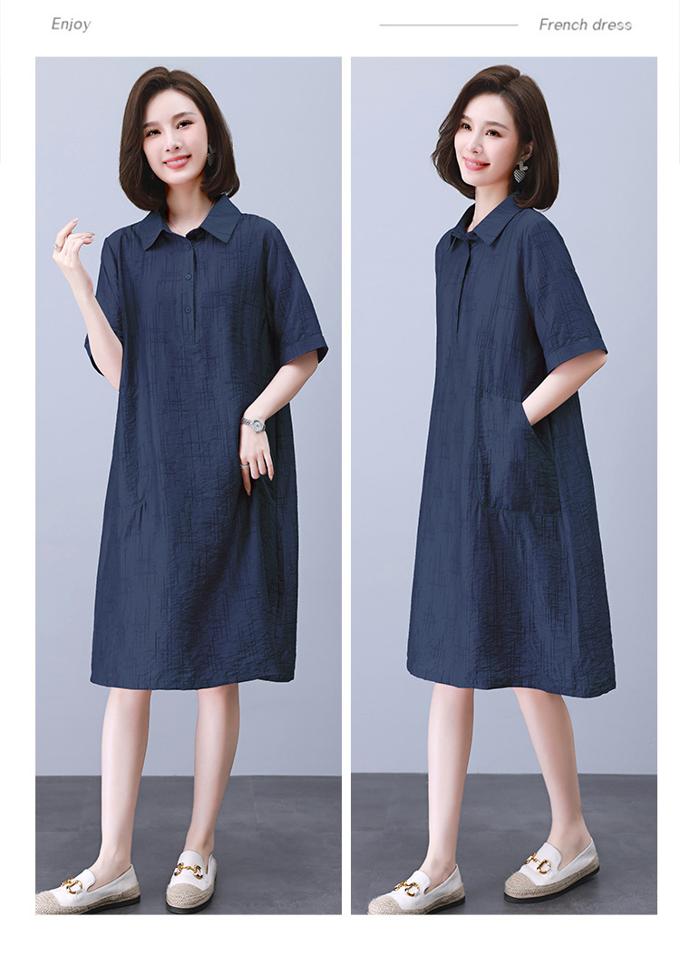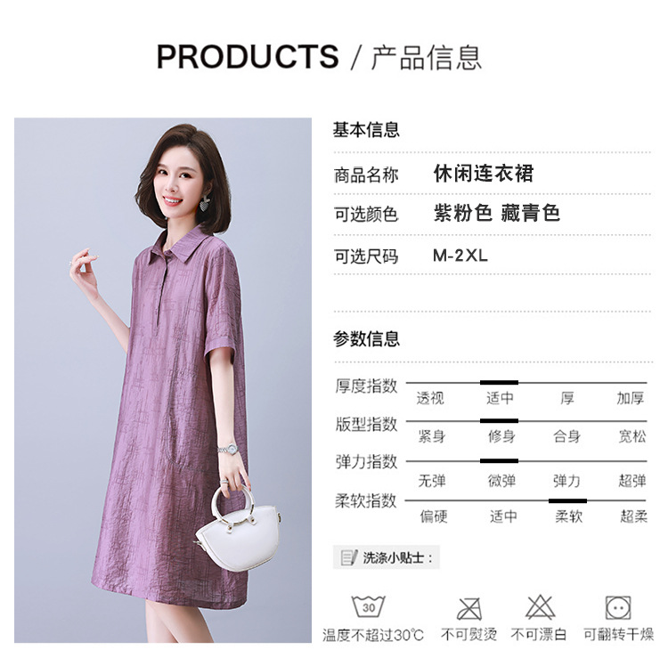 HR WY21109大码宽松遮肉显瘦连衣裙气质翻领时尚天丝裙