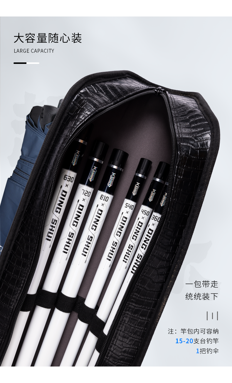 空钩悟道加长版综合竿包 鳄鱼皮纹多功能硬壳伞包轻便防水渔具包