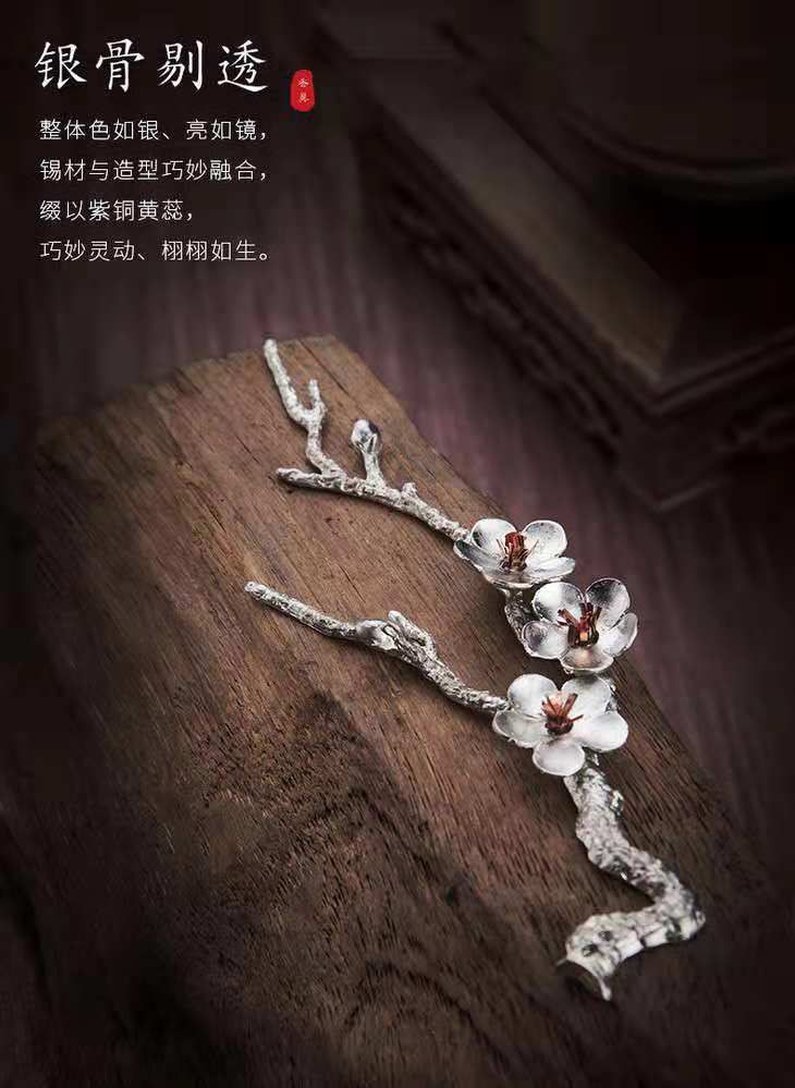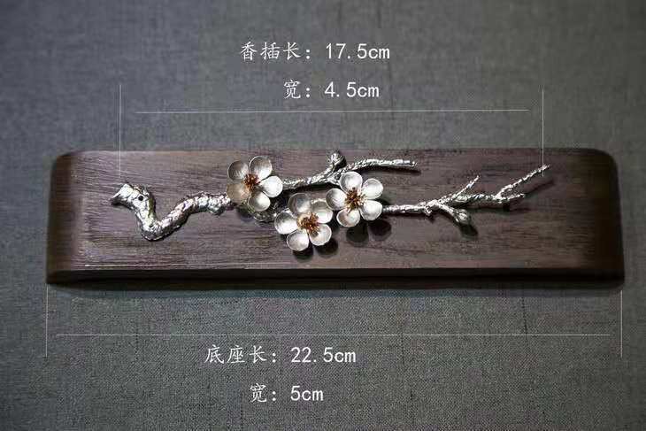 禅意 梅花锡香插(带木底座)