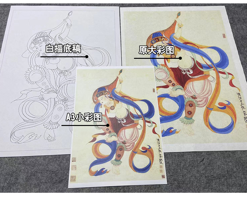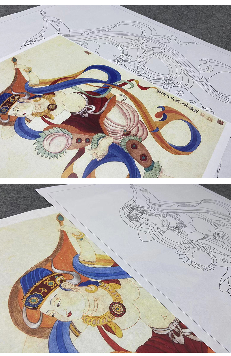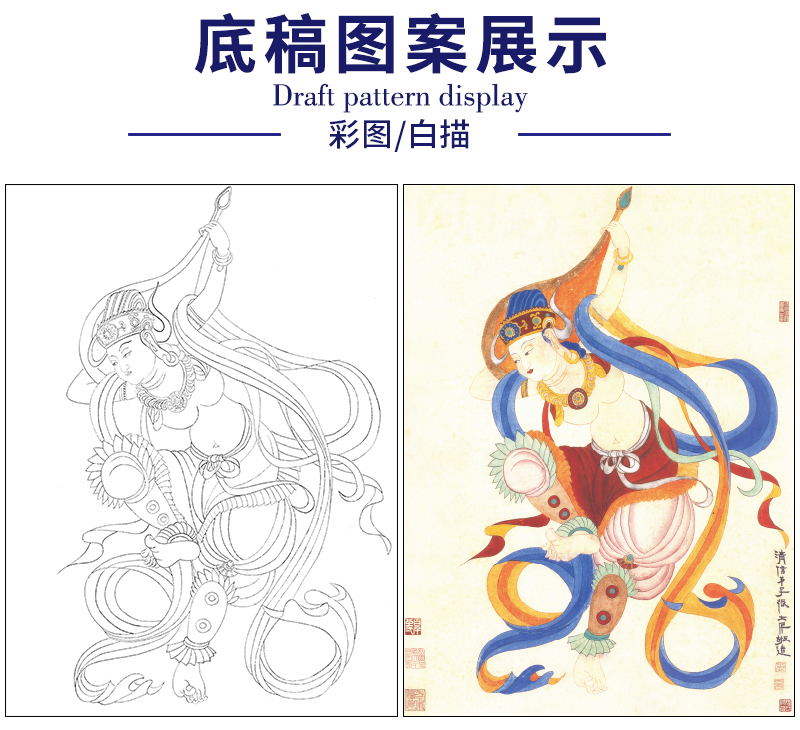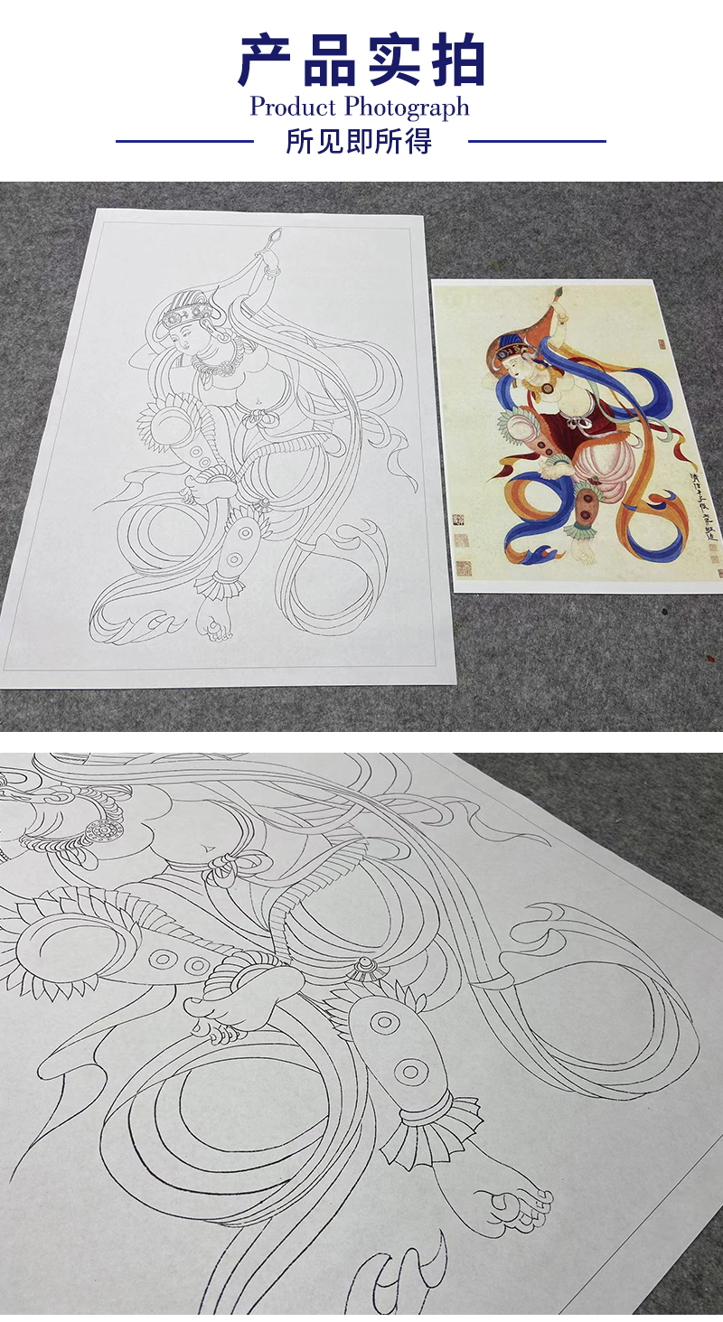 张大千工笔画白描底稿《反弹琵琶乐伎》临摹勾线高清打印稿YL15