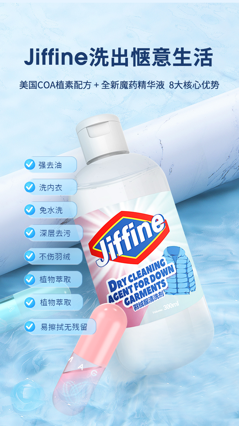 2021升级版羽绒服清洁剂魔药二合一清洁剂套装一瓶可抵12瓶!美国品牌植素配方温和不伤衣超大容量浓缩液