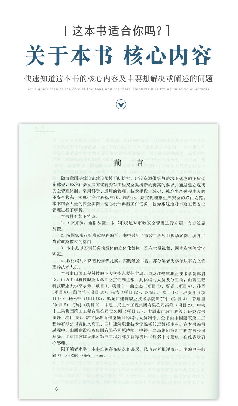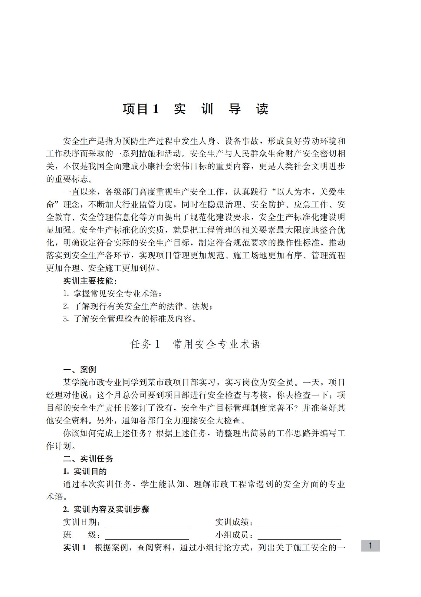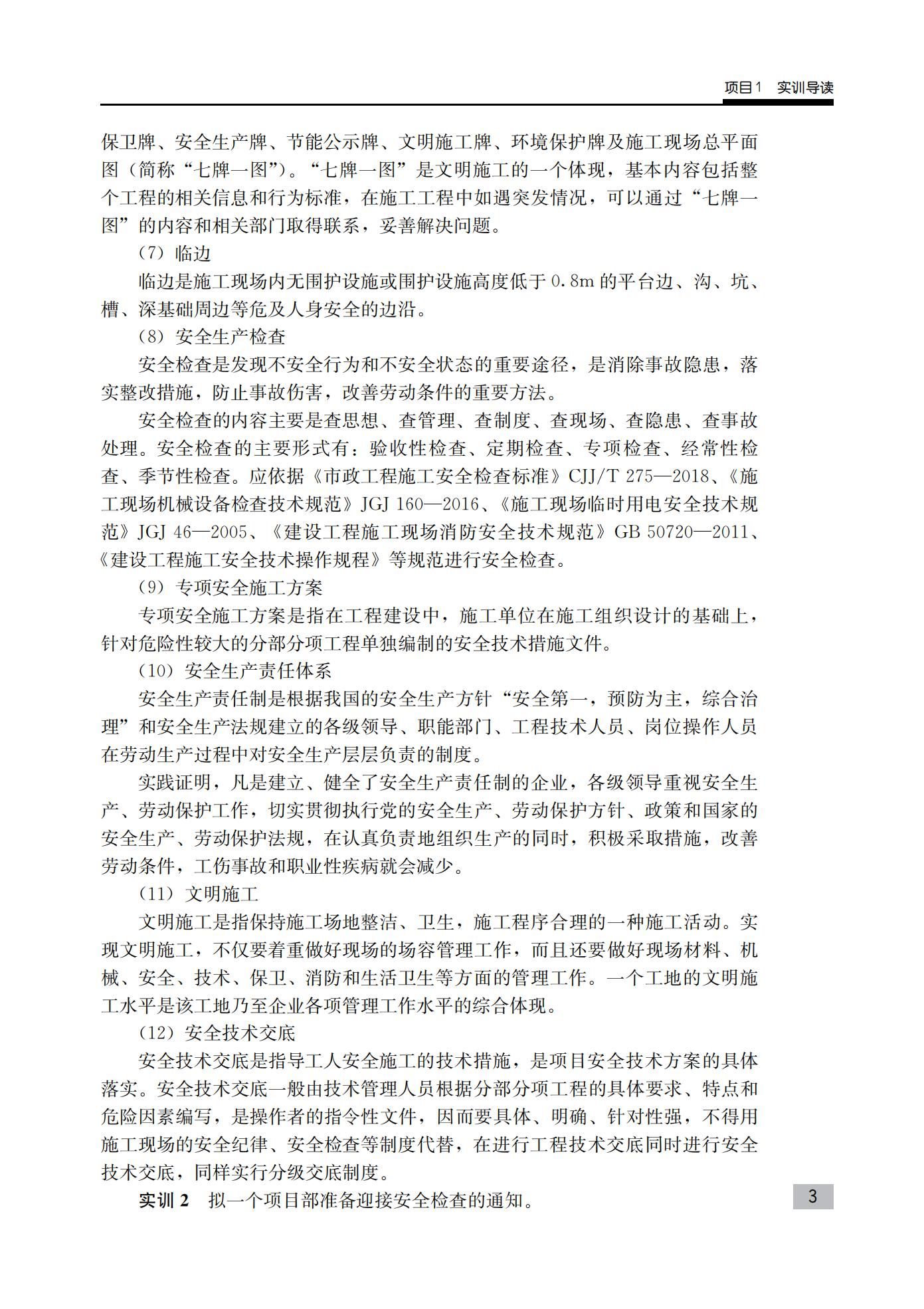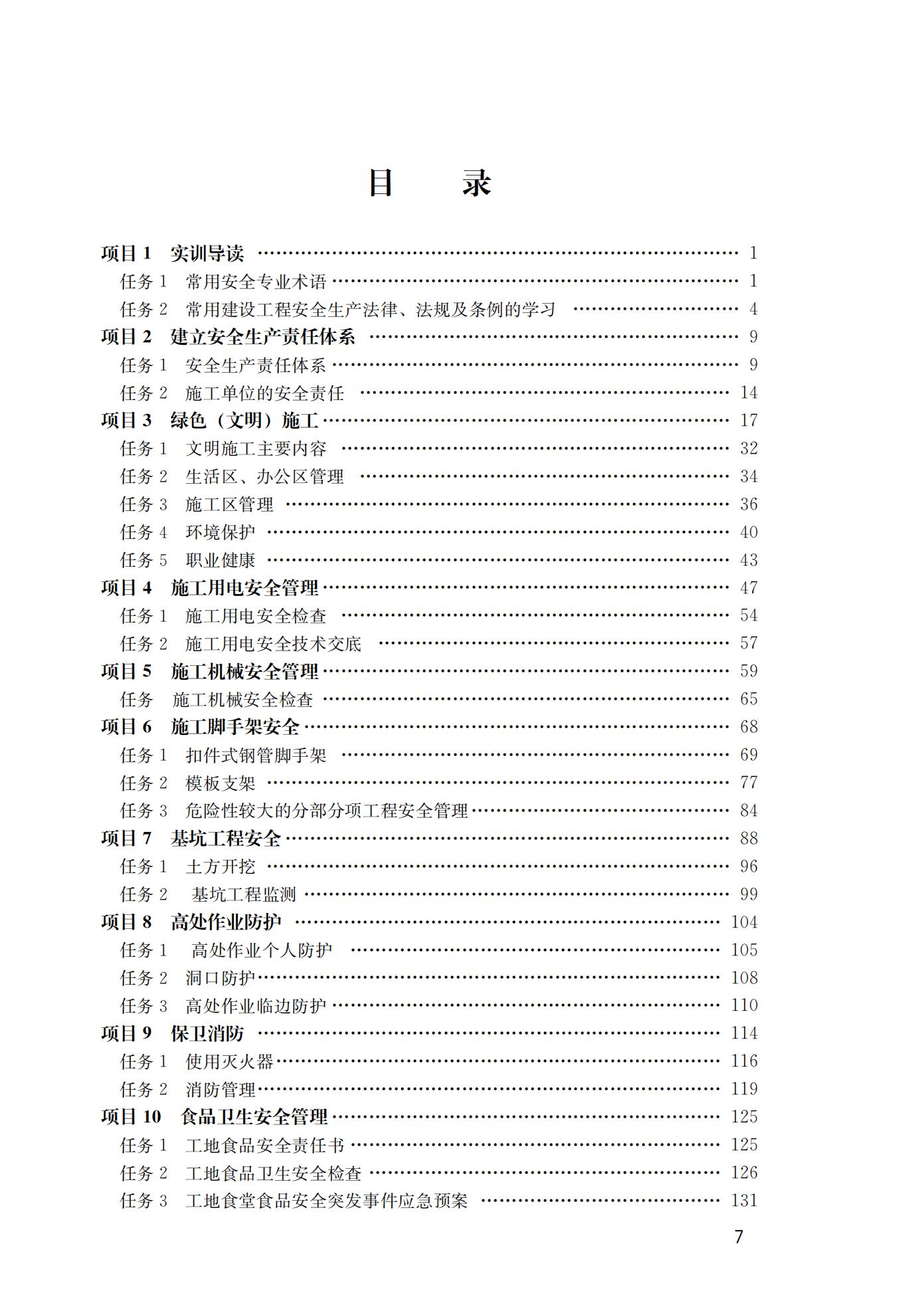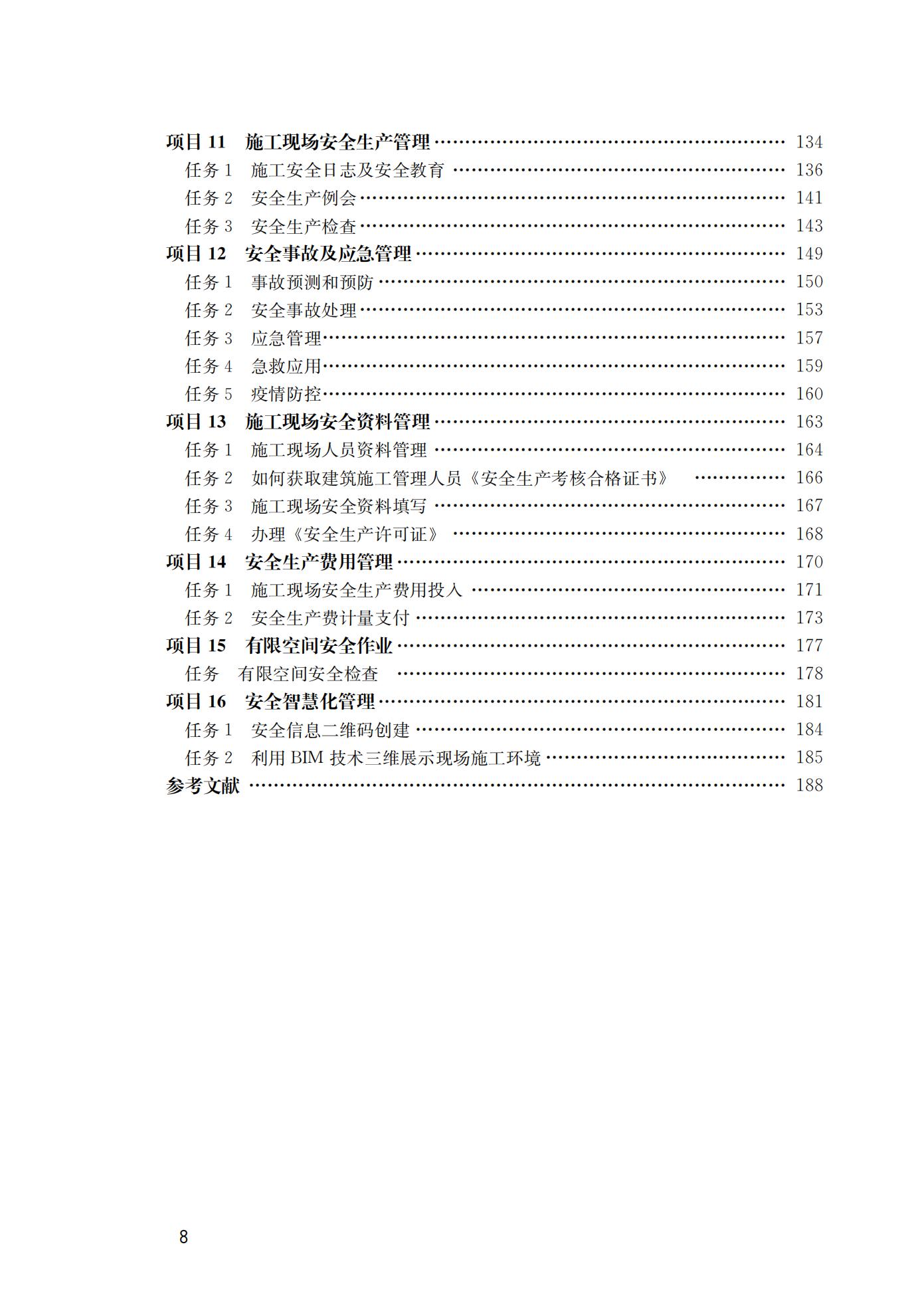 全书基本涵盖安全管理所有知识,主要结合案例学习安全管理通用知识,重点是通过实训项目,让学生在“做”的过程中,获得安全管理技能,同时将课程思政贯彻教学全过程。本书重点内容有:实训导读、建立安全生产责任体系、绿色(文明)施工、施工用电安全管理、施工机械安全管理、施工脚手架安全、基坑工程安全、高处作业防护、保卫消防、食品卫生安全管理、施工现场安全生产管理、安全事故及应急管理、施工现场安全资料管理、安全生产费用管理、有限空间安全作业、安全智慧化管理等。同时,学生可通过扫描书中的二维码,借助学习资源进行学习,在学习资源中有丰富的视频、图片、资料表格、专项安全方案、课件、部分学生实训成果等内容。